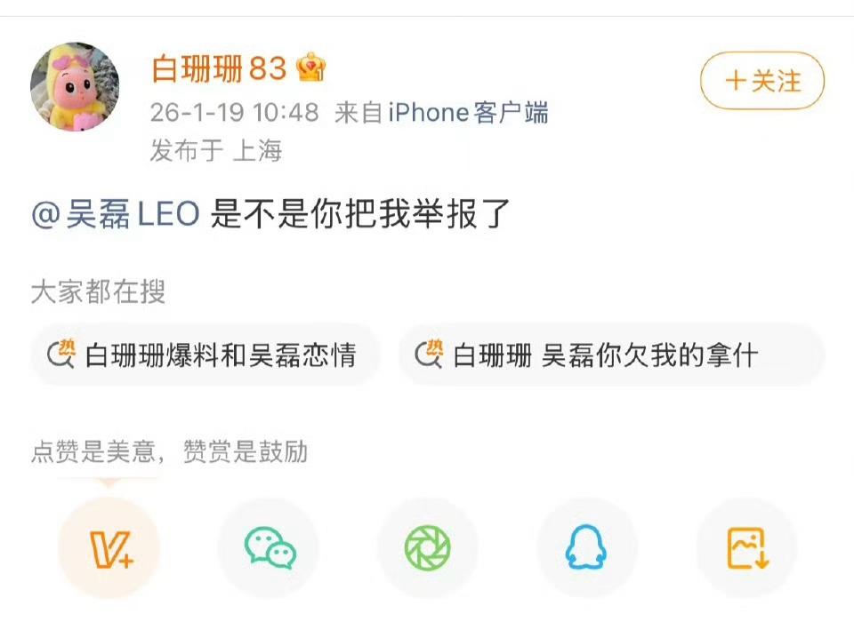 吴磊工作室严正声明白姗姗喊话吴磊:你欠我的拿什么还。她在网上出售吴磊床照,1w