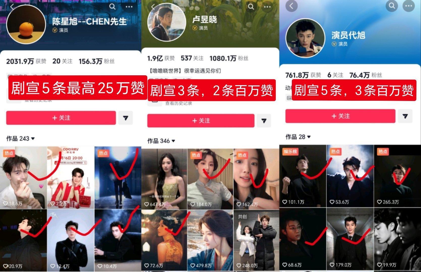 轧戏官抖点赞轸羞前6占4轸羞马上拥有第二个剧播后的百万赞剧播前那两个百万赞一直置顶数据也不涨🤣一番大男主陈自建,剧宣5条最高25万赞鲈鱼剧宣3条,2条百万赞,不如个人营业数据代旭老叔,剧宣5条,3条百万赞一番大男主剧播着像是一个隐形素人 问就是个体户,虽然kol卖惨红稿通稿不断