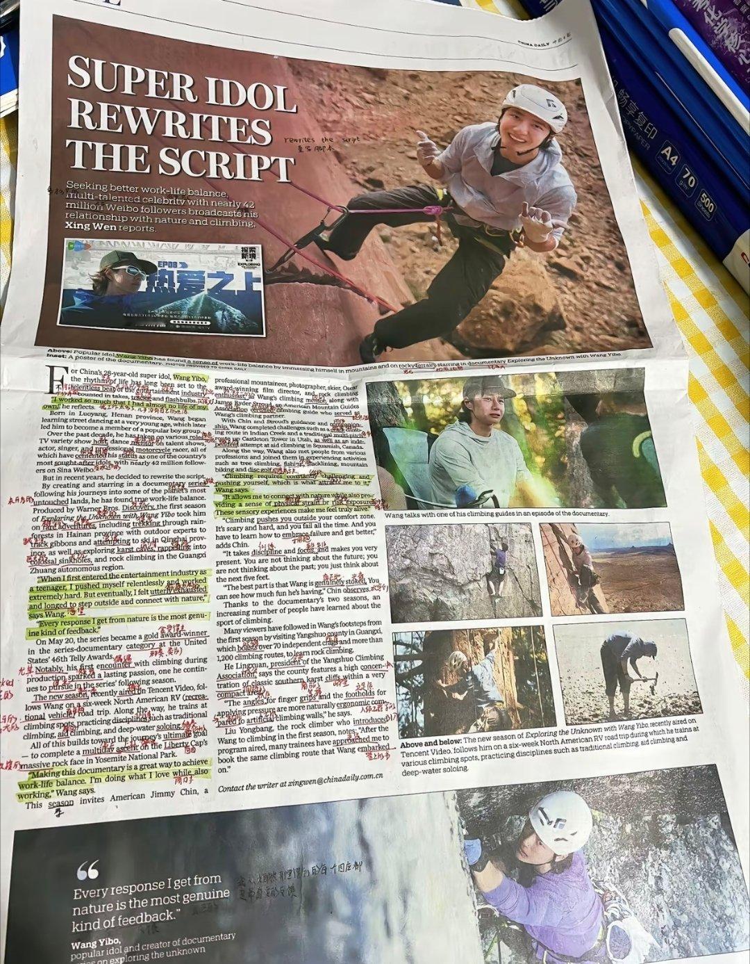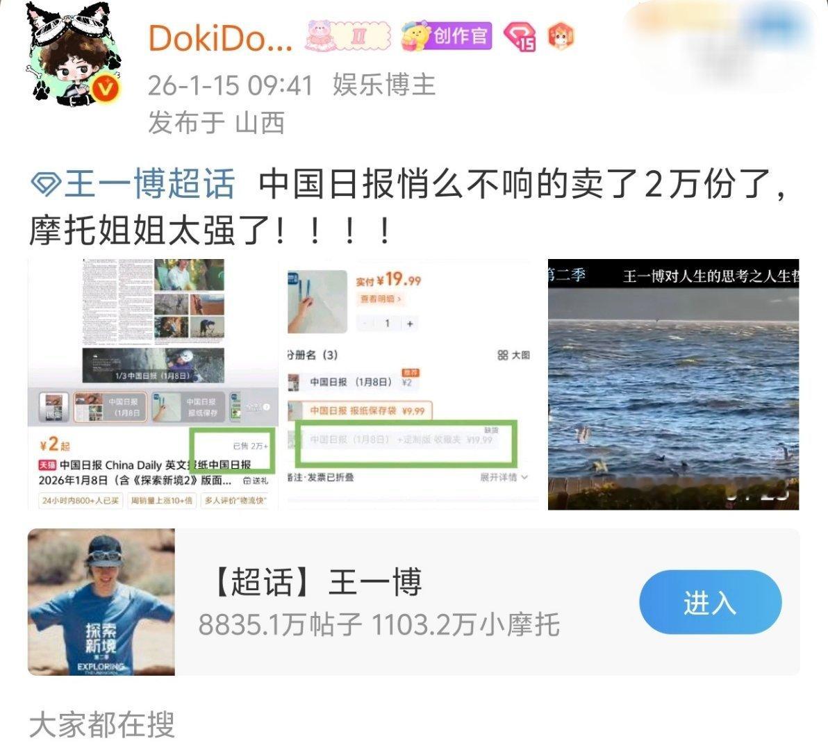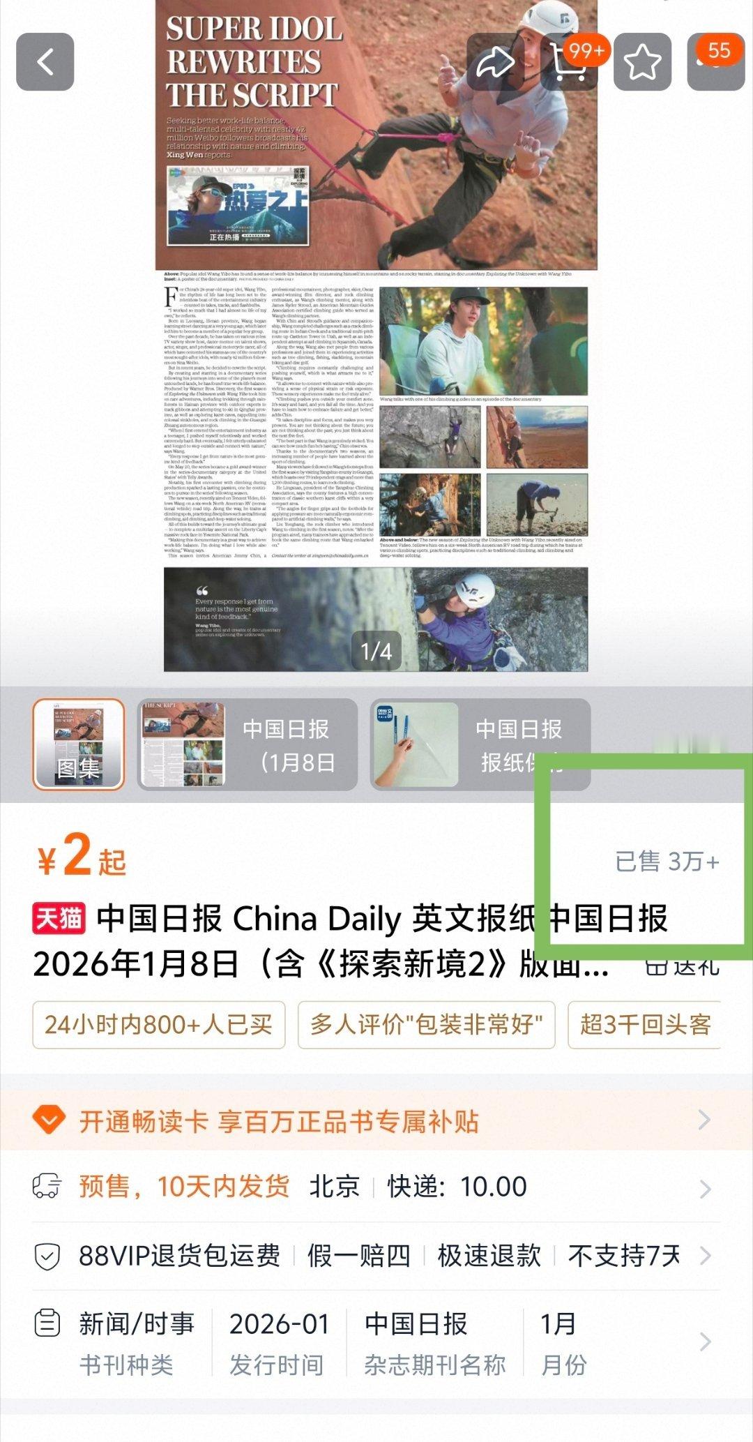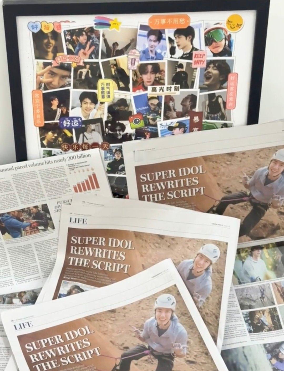 王一博 离我上次发,《探索新境》在无人的角落,零宣传零推广卖了2万份,这还没几天,今天一看,3万份了。在邮费是报纸价格5倍的情况下,其他地方的销量暂且不提(小红薯当天售罄),目前《探索新境》销售数量已经超过该店铺前三名总和。而最让感动的,是这些报纸真正“走”进了生活:📚它们出现在初中教室、高中课堂、大学图书馆;👨🏫被学生收藏、被老师参考、被教育工作者认可;💚当一位学生拿着这份英文报纸对父母说“这是我的偶像”时,换来的是一份放心与支持——这就是王一博带来的正能量底色。也见证了太多摩托姐姐们沉甸甸的爱:有人精心装裱,把报纸变成生活中的风景;有人逐字手抄,让油墨香染进笔尖温度。✨大家的爱,从来都拿得出手,且处处是惊喜。静默生长,自有回响——这不仅是关于探索的故事,更是王一博与摩托姐姐们,用正能量共同写下的注脚。✍️