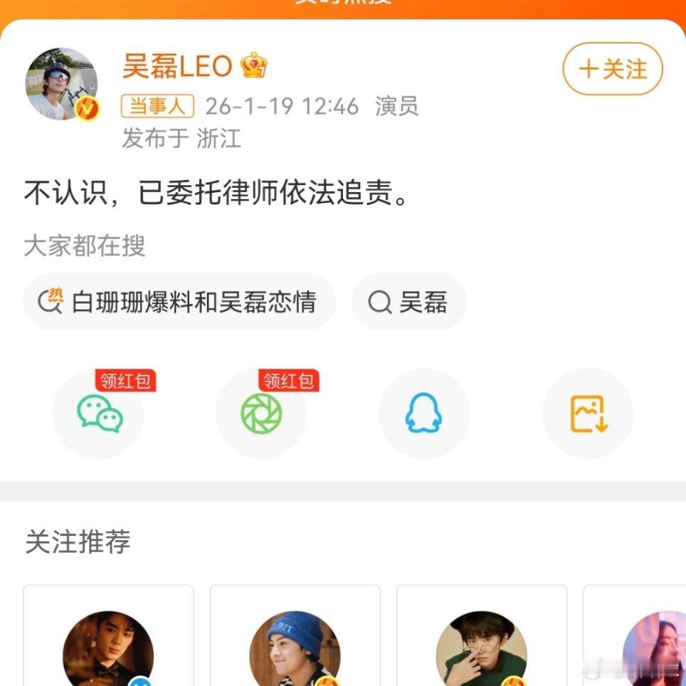 吴磊工作室这一波操作真的很迷惑被造谣的是肖战,肖战粉丝也只是发了一条澄清,但是吴