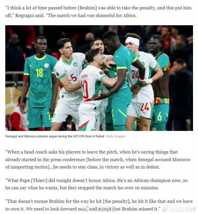 【非洲杯决赛惊现记者互殴】非洲杯决赛球迷把显示屏都拆了 北京时间1月19日,第35届非洲杯决赛在摩洛哥首都拉巴特举行。塞内加尔队经过加时赛争夺,以1:0战胜东道主摩洛哥队,获得非洲杯冠军。本场比赛可谓一波三折,塞内加尔队一度罢赛,但他们最终“一剑封喉”。由于比赛中出现争议判罚,现场爆发混乱。据报道,塞内加尔队的球迷开始翻越围挡冲入场内,跳上电子显示屏,拆毁了球场一侧的显示屏。报道中提到,冲突甚至蔓延到了记者席,记者席上同样爆发了冲突,记者们互相打了起来。