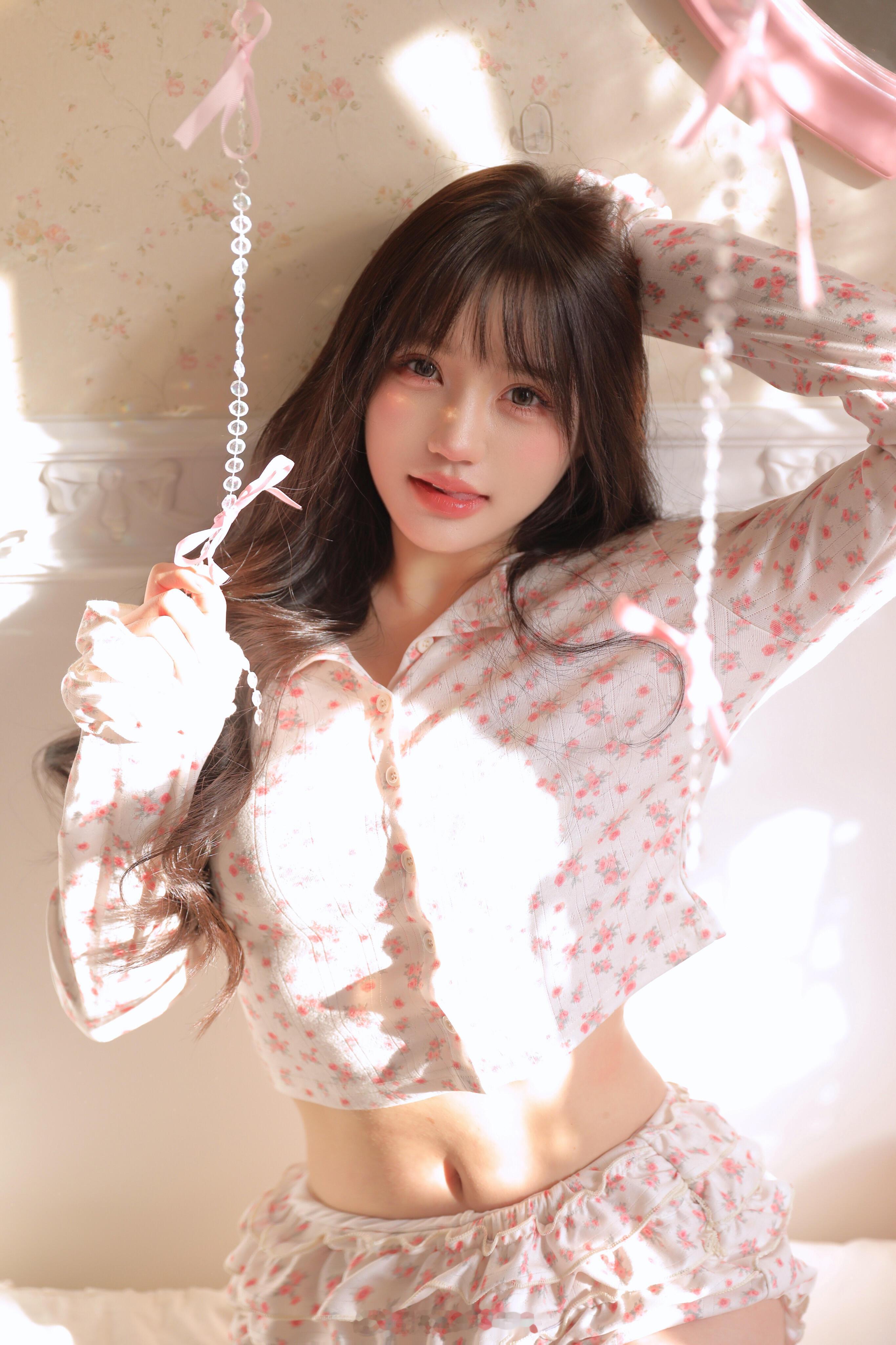 暖调光影裁开柔白衣袂,指尖轻扬拢住一束光,睫羽垂落的瞬间,鎏金轮廓吻上肩颈,清冷