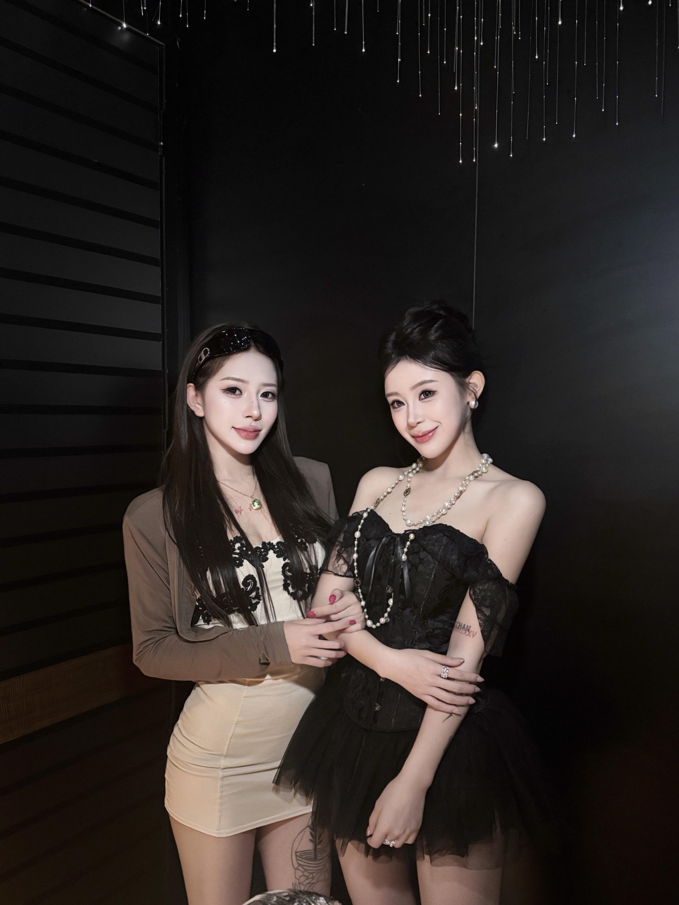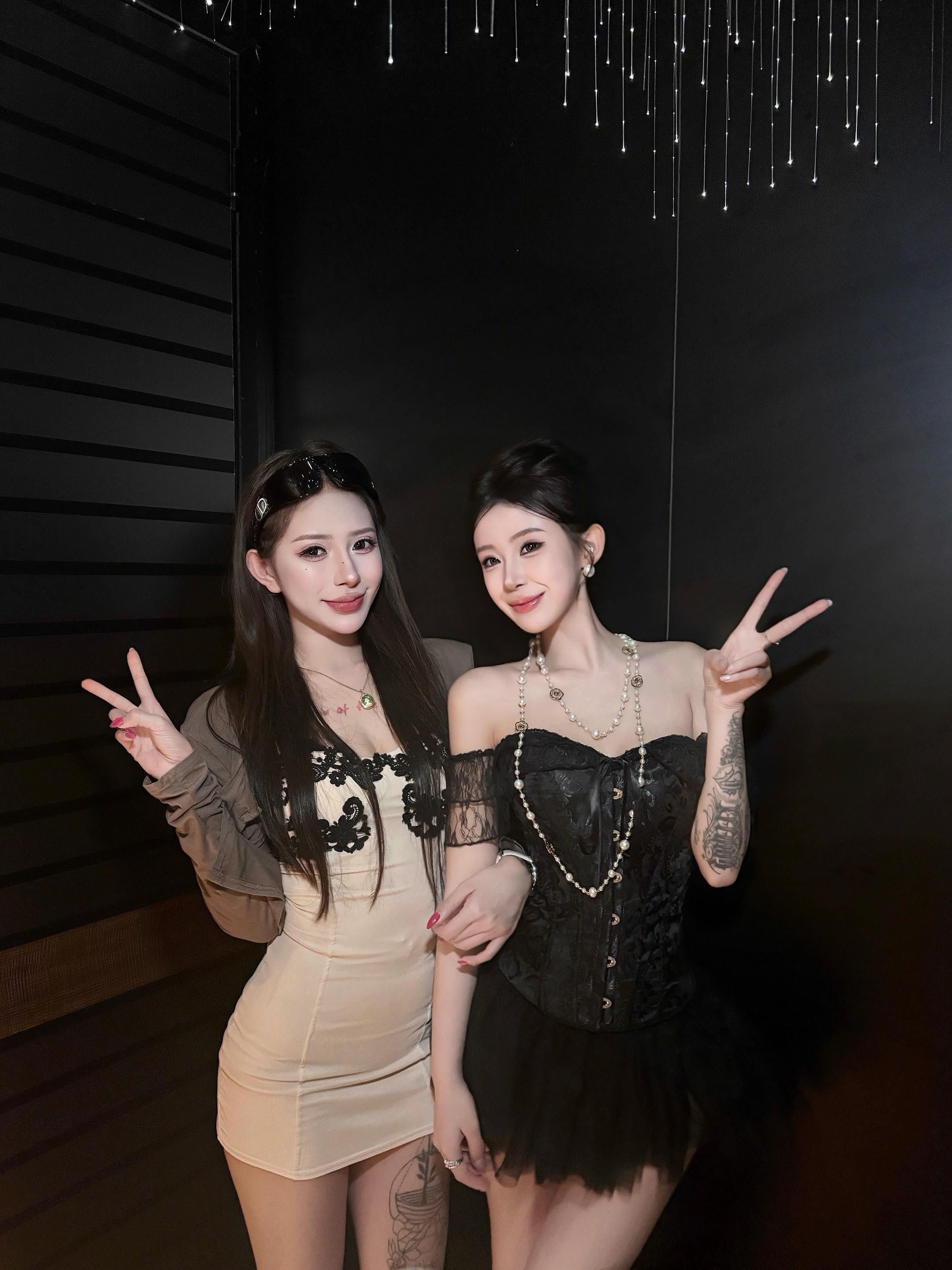 两个女人拍照眼里全是对自己美貌的欣赏