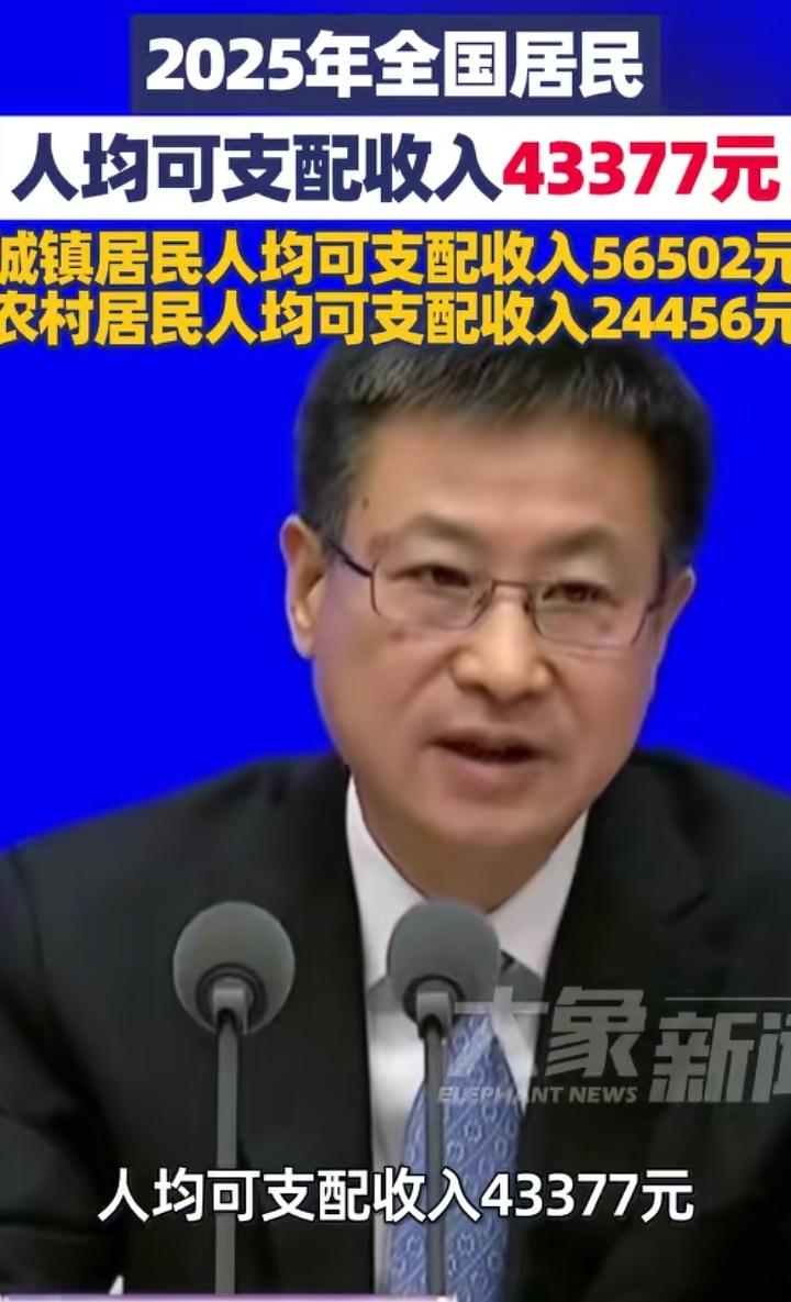 2025年全国居民人均可支配收入43377元,这样一平均,似乎我们也没那么困难。 如果说是自己打工来算很合理,如果把一家老小也算里,那差点就有点多了。 突然想起了一句网络热梗,发财之时没有我,平均算时却带上我。