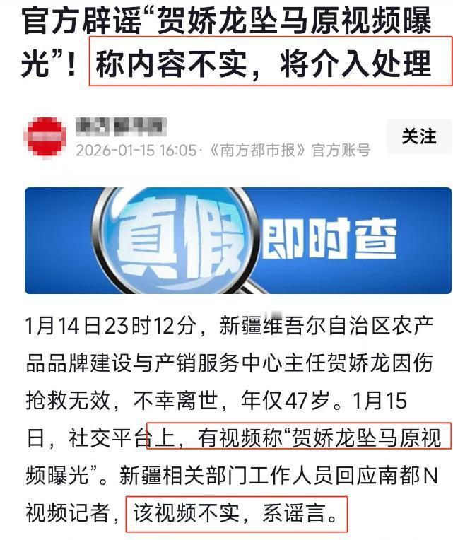 别让“流量”玷污哀思! 贺县长身后事, 官方出手了! 她穿红斗篷骑马视频火遍全网, 没接商单没拿推广费。 直播收入全做公益, 五年捐了千多万。 1月11日为农产品拍摄, 意外坠马去世。 之前就摔过几次, 家人劝过不听。 追悼会天寒地冻, 群众自发来送。 昭苏还下了雪, 有人借机卖假药编内幕蹭热度。 官方马上澄清事故真相, 平台清理不良账号。 她用流量帮家乡, 把热血洒在边疆。 留下的品牌和坚守, 会被很多人记住。