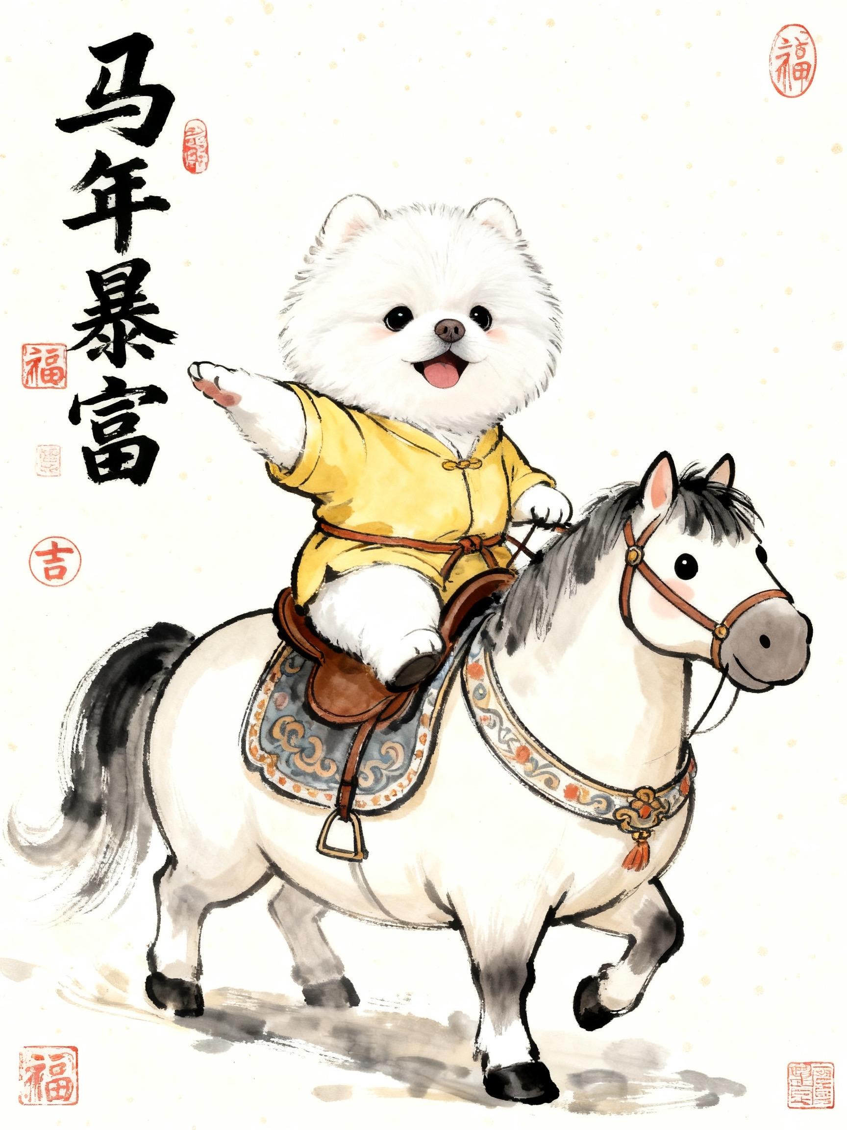 国潮萌马插画谁家小狗像个小宝宝