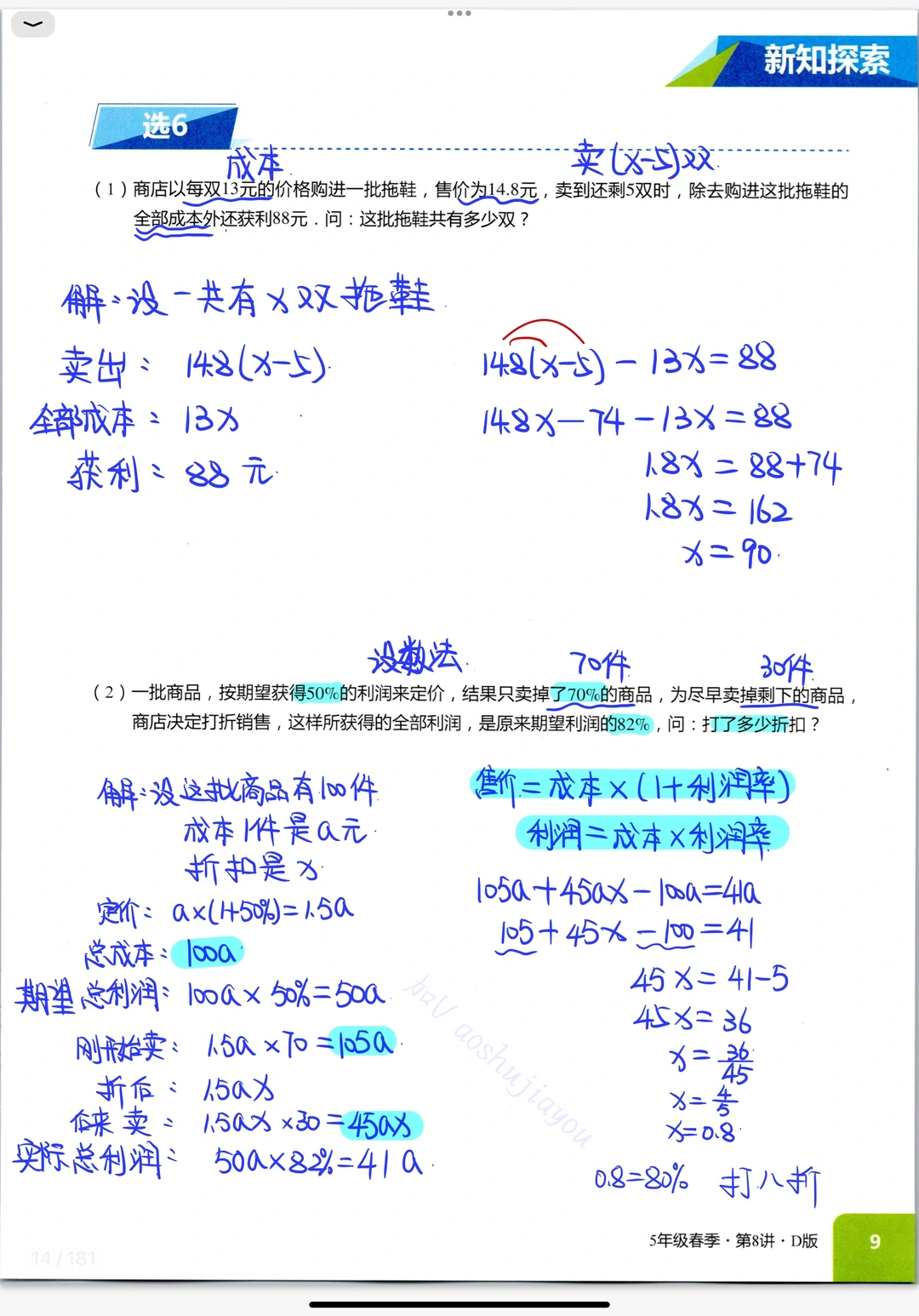 《列方程解应用题》四年级春季奥数课堂笔记