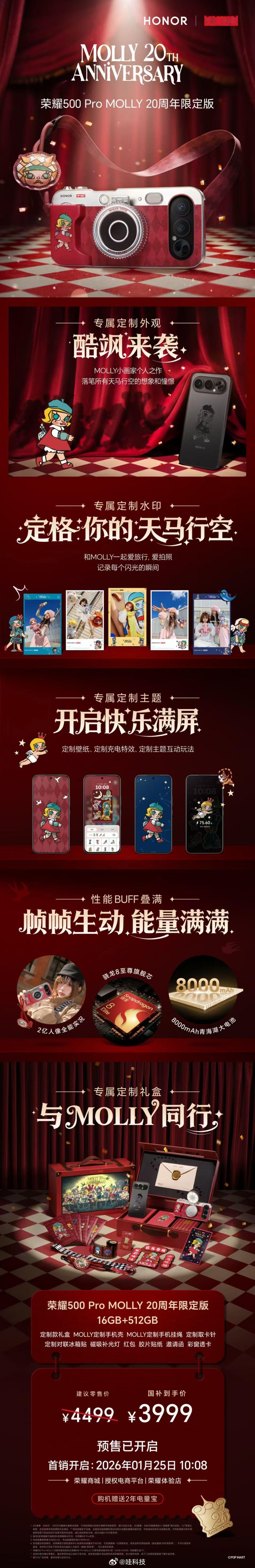 荣耀发布会 荣耀Magic8 Pro Air直接把轻薄做到极致,155g重量+6.1mm厚度,6.31英寸机身握在手里超舒服,轻橙、仙紫等四色颜值在线。关键是轻薄没阉割影像,5000万大底主摄+6400万潜望长焦+5000万超广角三摄,天玑9500加持,IP68/69防水、双扬、四卡双待全配齐,5500mAh电池+80W快充,续航也不虚。保时捷设计款更绝,陶瓷机身质感拉满,2亿像素长焦+专业影像套装+2.35倍增距镜,摄影党直接冲。还有北斗+天通双卫星通信,户外安全感拉满。价格才是惊喜:Magic8 Pro Air国补后4499元起,MOLLY限定版3999元拿下16+512GB,保时捷设计款7999元。这个配置和价格,你们觉得怎么样