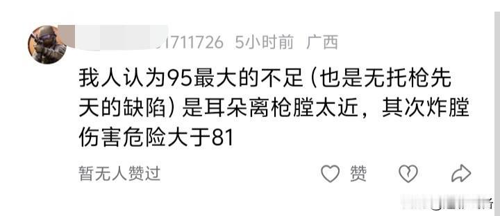 九五式步枪是如何被冤枉的?只因为它打破了很多人传统观念成了原罪? 十年的网络军事领域耕作经验,总结出来一条:抹黑九五式步枪的十个人里面有八个是没摸过枪的,剩下两个是用不明白的!就比如今天要说的这位,我称之为臆想判断。就是自己对枪械的认知水平不够,又喜欢以第一人称视角想象自己握持九五式步枪作战的场景,找出来了一些反常识的罪名给九五式步枪扣上,可爱又可笑! 先第一个,持有这个说法的人还不少,意思就是九五式步枪的耳朵距离枪膛太近,所以声音很大!我们需要弄清楚一点,枪声是在弹头出膛时才产生的,它在膛内怎么发出声音了?这和耳朵距离枪管口部距离远近有一定关系,和距离枪膛近有啥关系?另外,过高的声音会对射手自身造成伤害,枪声的控制范围也是现代制式枪支的装备的一个硬指标,九五式步枪和八一式步枪的枪声分贝数值测试结果是一样的。无非就是很多人看到其尺寸短小产生的心理作用罢了。 很多人都认为九五式步枪炸膛后果一定会比传统有托步枪严重,还是因为射手面部距离枪膛距离近,但事实恰恰相反!目前有官方记录的九五式炸膛事件有两起,这两起炸膛事件是同时发生在爱尔兰突击比赛的泅渡射击项目,我当时听说这事的时候第一反应就是:啥训练水平?这不是枪的问题,这就是人的问题!我们泅渡训练上岸的第一时间就是排水清理枪管,如果是上膛的情况下,枪口朝下半拉枪机给枪管排水。结果万里挑一去比赛的居然犯了这么低级的错误,还一次两个!听说是人没事,被判罚了! 我所知道的另一起就是我们部队留队战友发给我的,很多年前的事了。弹药问题导致炸膛,居然只是整个后机匣抛壳窗上部出现一个鼓包,匣盖和枪体被崩出半公分左右的间隙,其他上下护盖都没半点影响。有人说是不是威力不大,拆开一看枪机机头都崩裂开了。原来也见过五六冲和八一式的炸膛情况,几乎都是上机匣盖直接崩飞等情况,容易伤到射手。反观九五,也正因为使用工程塑料,拥有极强的抗压与可塑性,面对炸膛时利用自身的延展性将弹药爆炸的压力吸收抑制下来。与刚性很强的步枪在这方面形成鲜明的对比。 还是那句话,九五式自动步枪有自己的缺点,遇到真懂的提出来叫批评指正,而不是把一些莫名其妙的罪名给它扣上! 趣聊军事圈 军事杂谈MCN双量进阶计划
