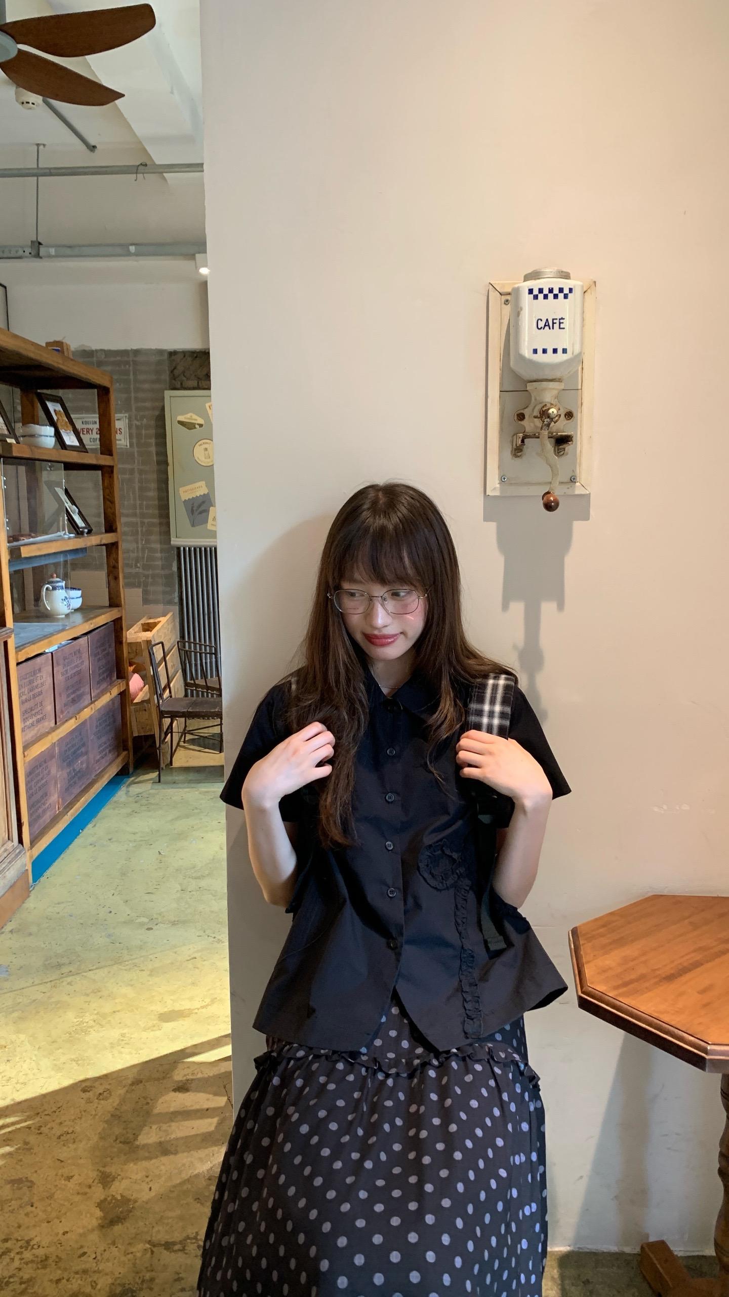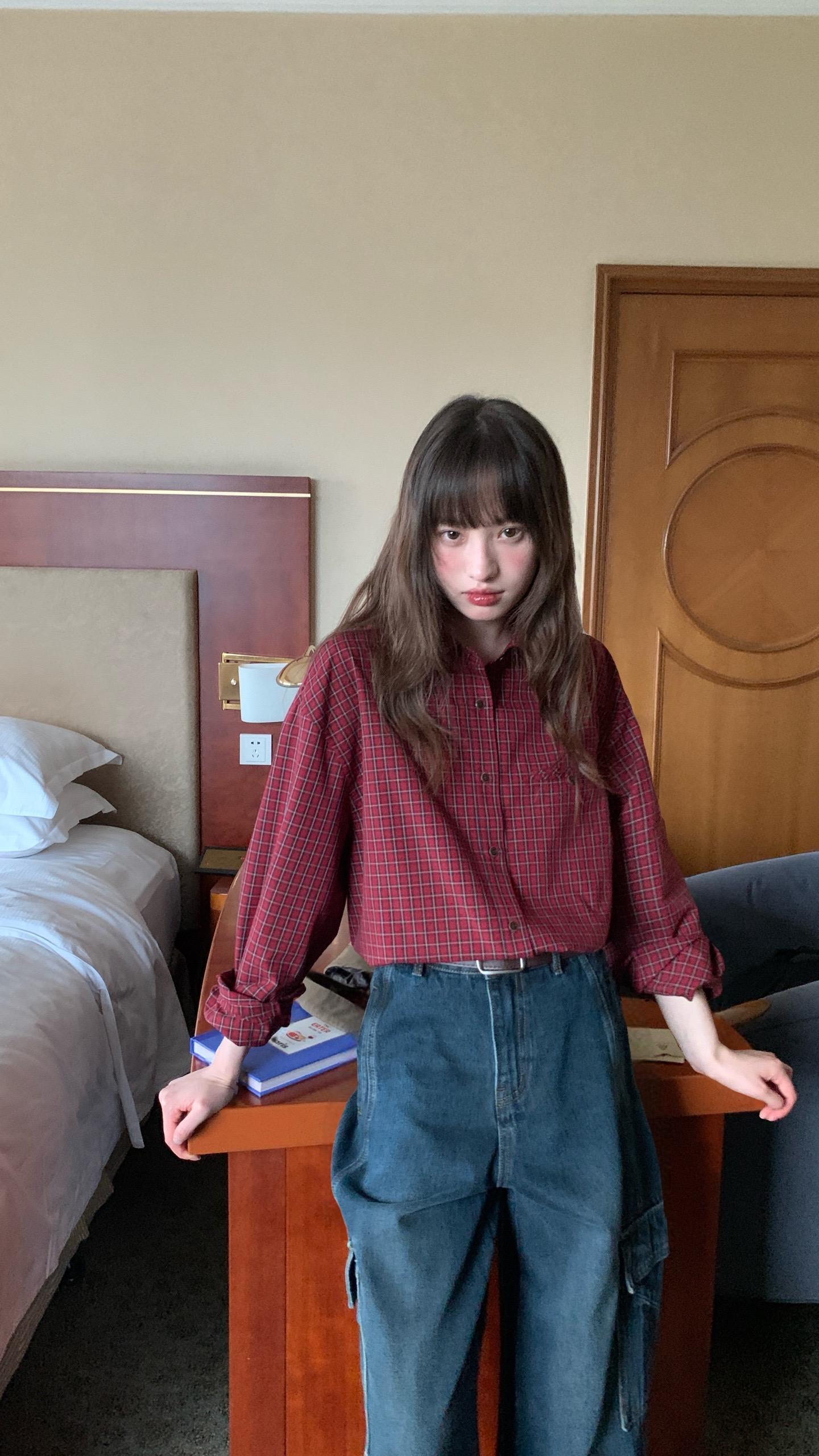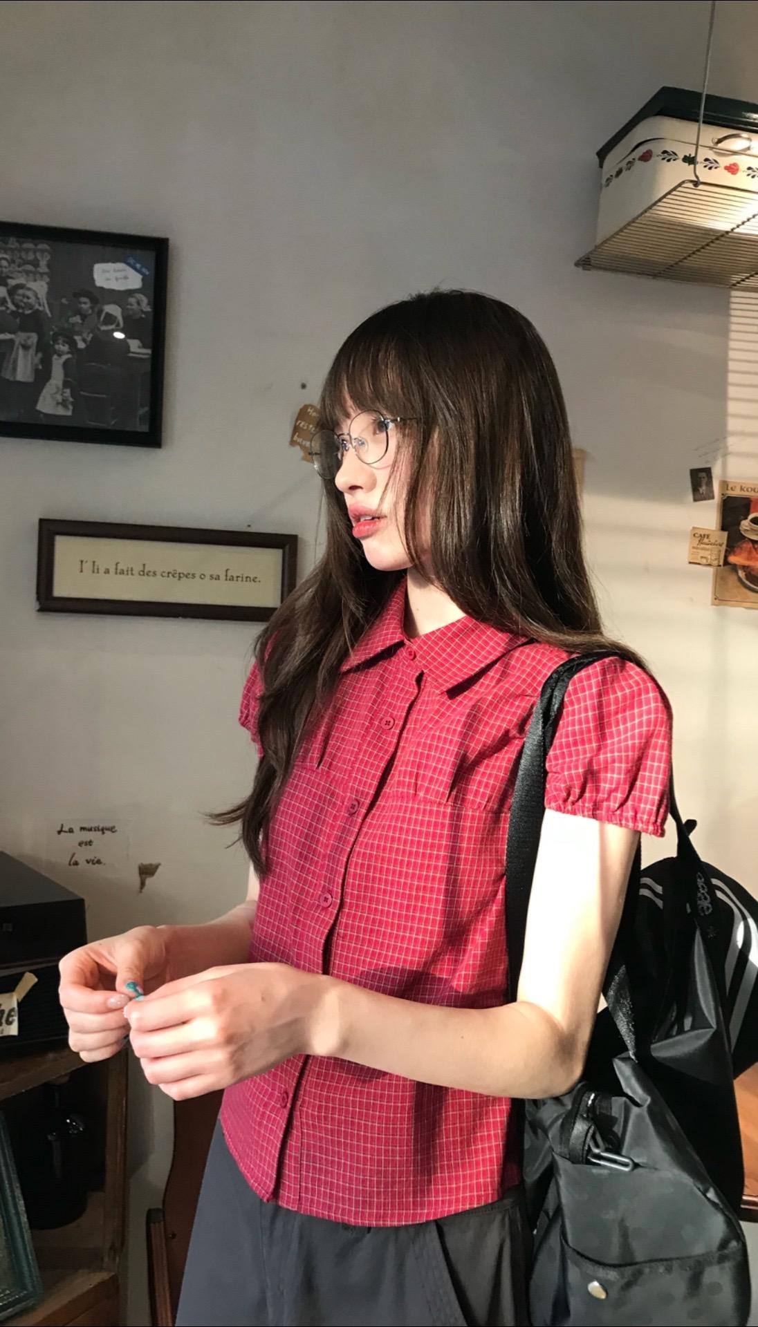 春日里花影摇曳,有人倚于门边,那景致美得如诗如画。印花衬衫搭配格纹短裙,尽显都市