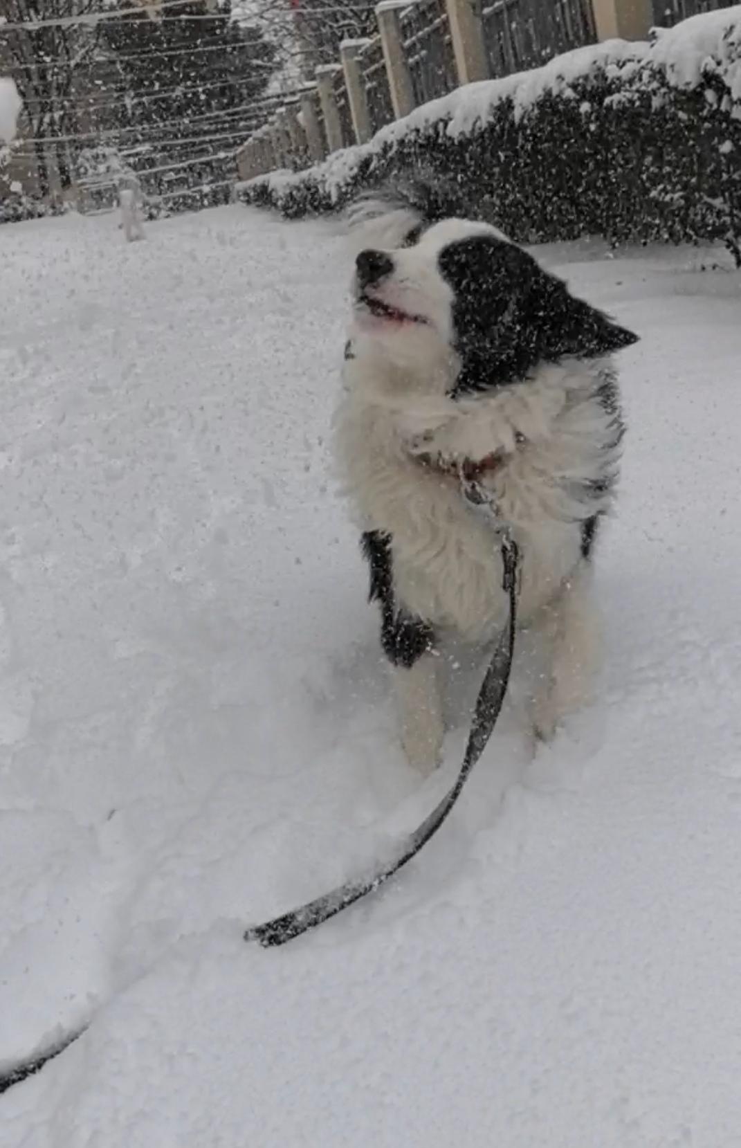 寒云凝霜覆庭阶,岁暮大寒年味来。 盼望着,盼望着,终于等来了2026年的第一场大雪,好开心,心情美极了。 估计途途和我一样,超级喜欢雪,一大早,我们就来到家门口后院墙的草地,这里还无人涉足呢,途途直接俯冲过去撒欢,和它打雪仗,这傻毛孩就会跳起来接雪疙瘩,一早上都不知道吃进肚子多少雪啦。 闲来无事的人像我一样盼望大雪,瑞雪兆丰年嘛,上班族学生族就不美气啦,一场大雪,会让他们的道路无比艰难,看到大马路上,市政、环卫部门都在进行除雪作业。 喜欢雪是一种心情,道路交通安全是第一要素,友友们,雨雪天气路面湿滑,做好防滑保暖措施,愿大家谨慎慢行平安归家。