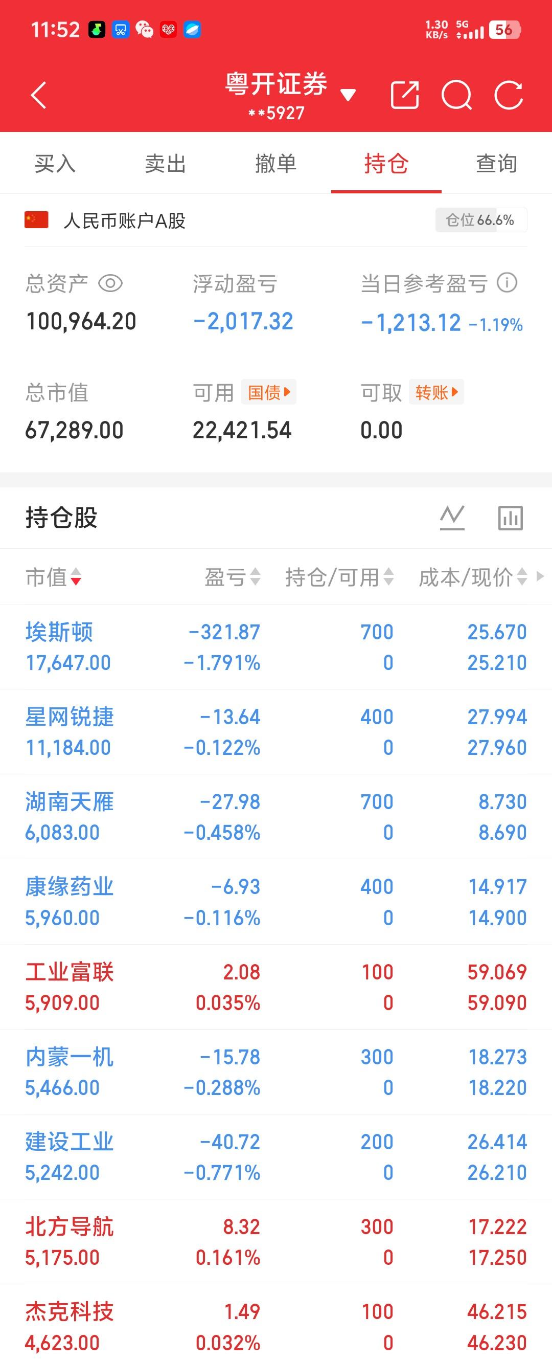 卖光了拓普集团、中粮糖业等一众票,埃斯顿以为会起来做了一个失败的T,然后买入了一些低价位置的股。 剩余资金下午2点30再买,买了我再发出来,各凭所需哈!不做推荐的,因为每个人不一样,环境(钱财、家庭、工作,买卖时机等等)和心态都不一样! 祝大家发财!