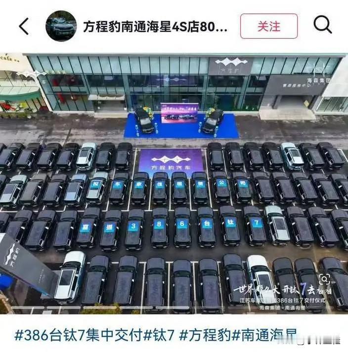 方程豹钛7:“感谢老板,给我这么大的排面!” 话说,汽车租赁公司都这么赚钱的么? 居然一次性采购386辆方程豹钛7,就按照最便宜的17.98万的价格来计算,需要6940万,就这金额不管是一次性付,还是分批付款,老板的实力绝对是杠杠的! 试问下,如果老板没有几十亿身家,敢这么造吗?大家觉得呢?[呲牙]