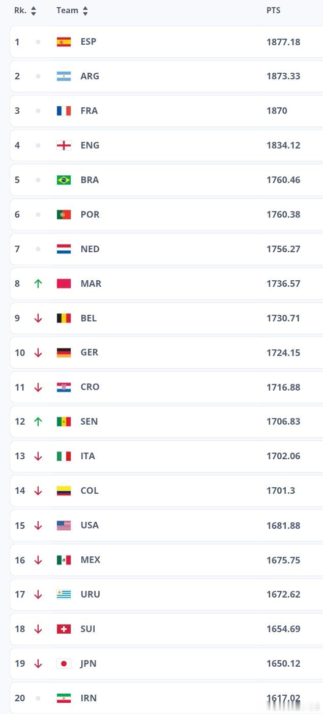 🚨最新一期FIFA男足排名,德國國家隊排名第🔟🇩🇪