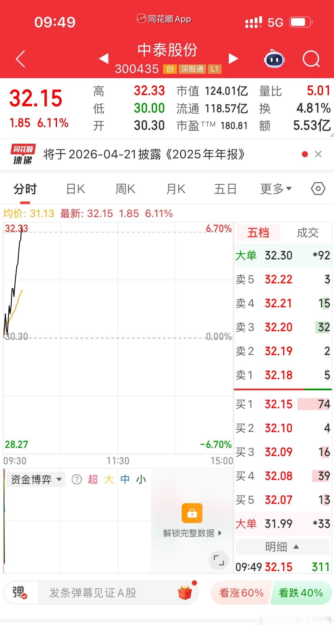 刚刚强调关注的中泰股份就收获3CM肉肉!!在车的朋友们坐好扶稳!