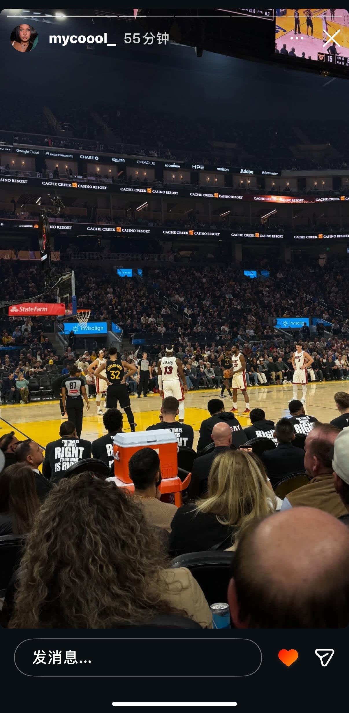 嘴哥带着他温暖的笑容回到了大通中心嘴嫂也在现场观看嘴哥的比赛热火vs勇士库里本赛