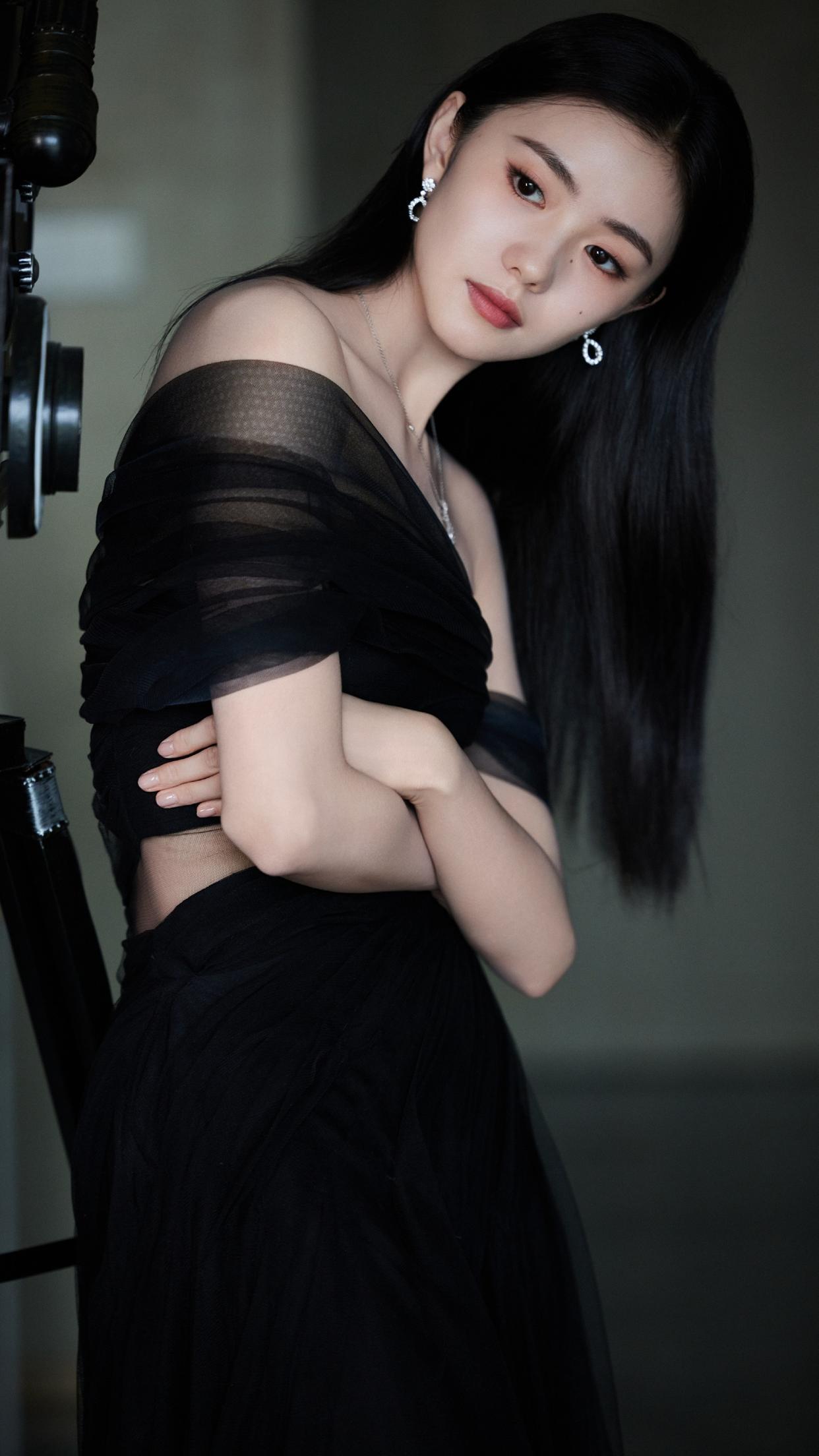 刘浩存真精致,黑纱曼妙,柔美动人