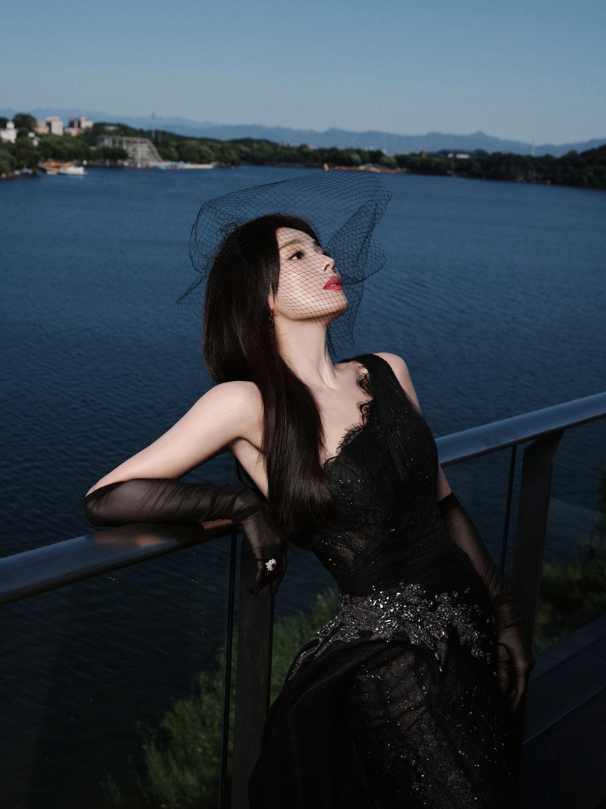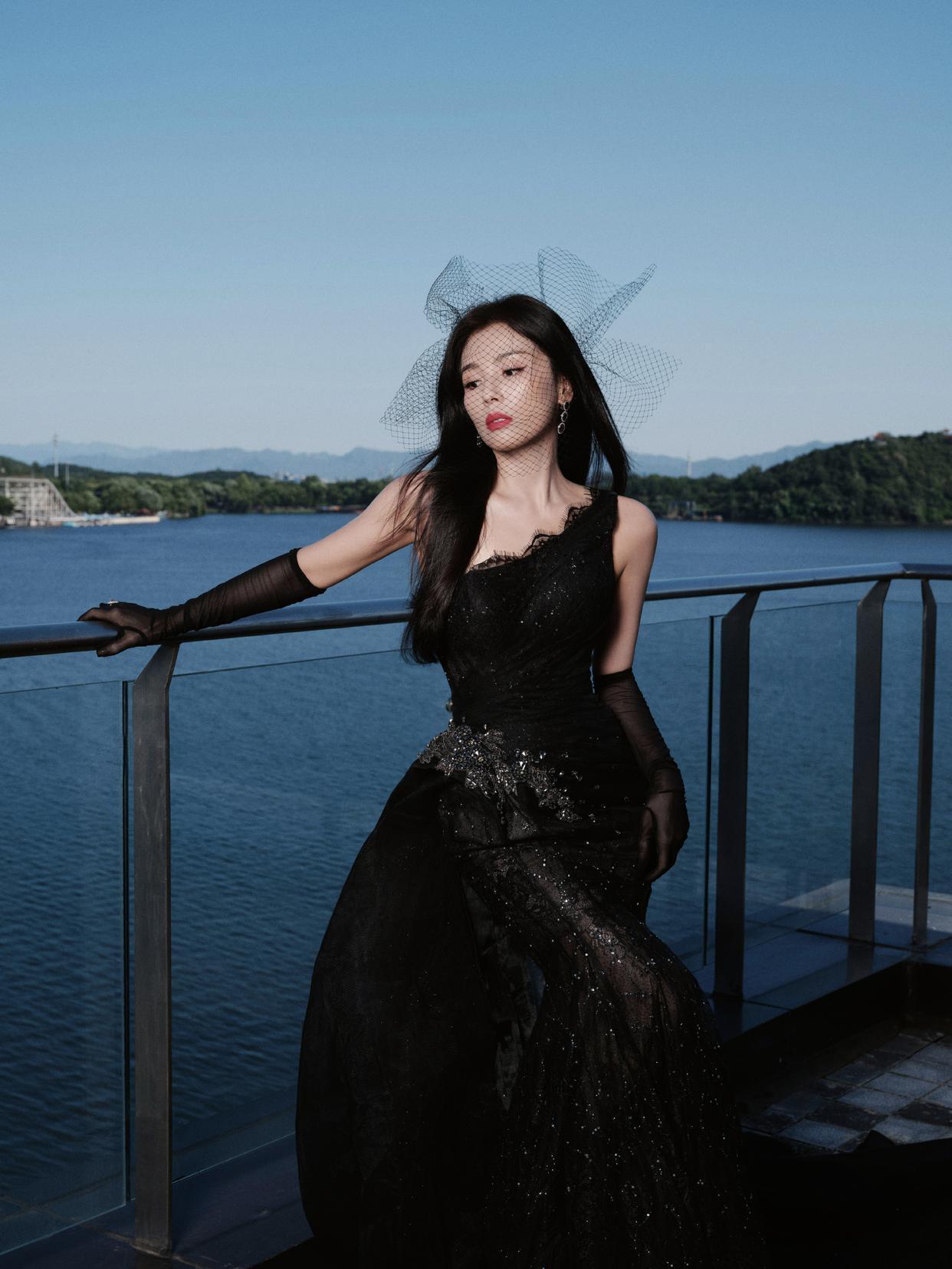 刘涛“桃”笑颜最动人:雾纱笼花,墨裙曳影