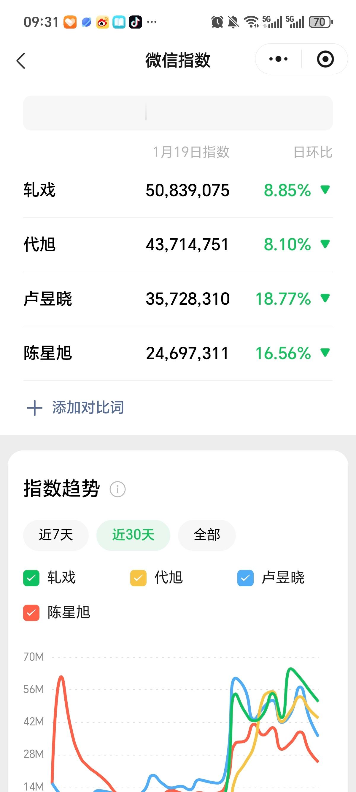 陈自建粉跟轧戏“剧粉”号称看剧只会嗑男女主,嗑轸羞的只看切片不看剧那昨天2122两集男女主正式在一起,亲亲抱抱腻歪不知道多少,热度应该新高吧???周日8677,昨天双更8569热度暴跌100+,甚至今天周二图2相比昨天同期都降30+,说明男女主糖精恋爱戏份超级劝退就连收视图3,目前最高的是轸羞戏份最多的15 16集,昨天17 18集就降不少🤣