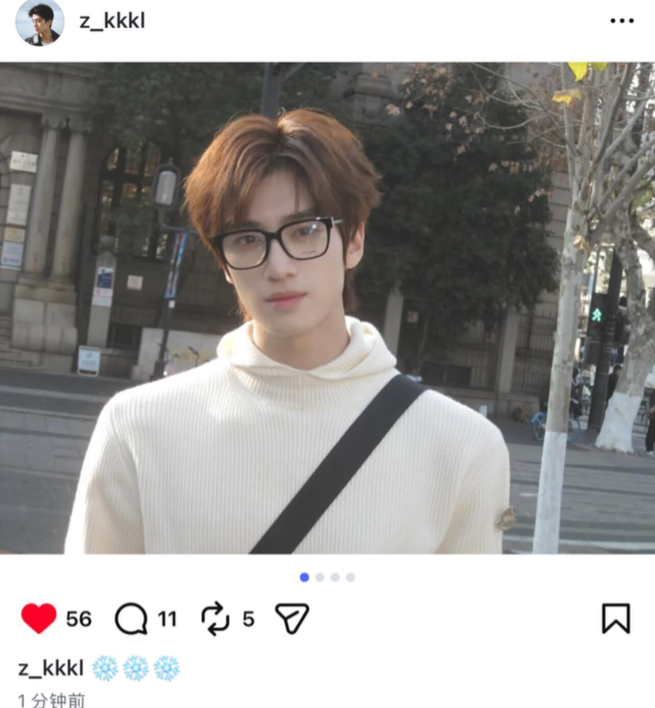 张康乐黑框眼镜男大 张康乐ins更新~完全冬日氛围感男神啊❄️美貌暴击妥妥的男大张康乐温柔学长