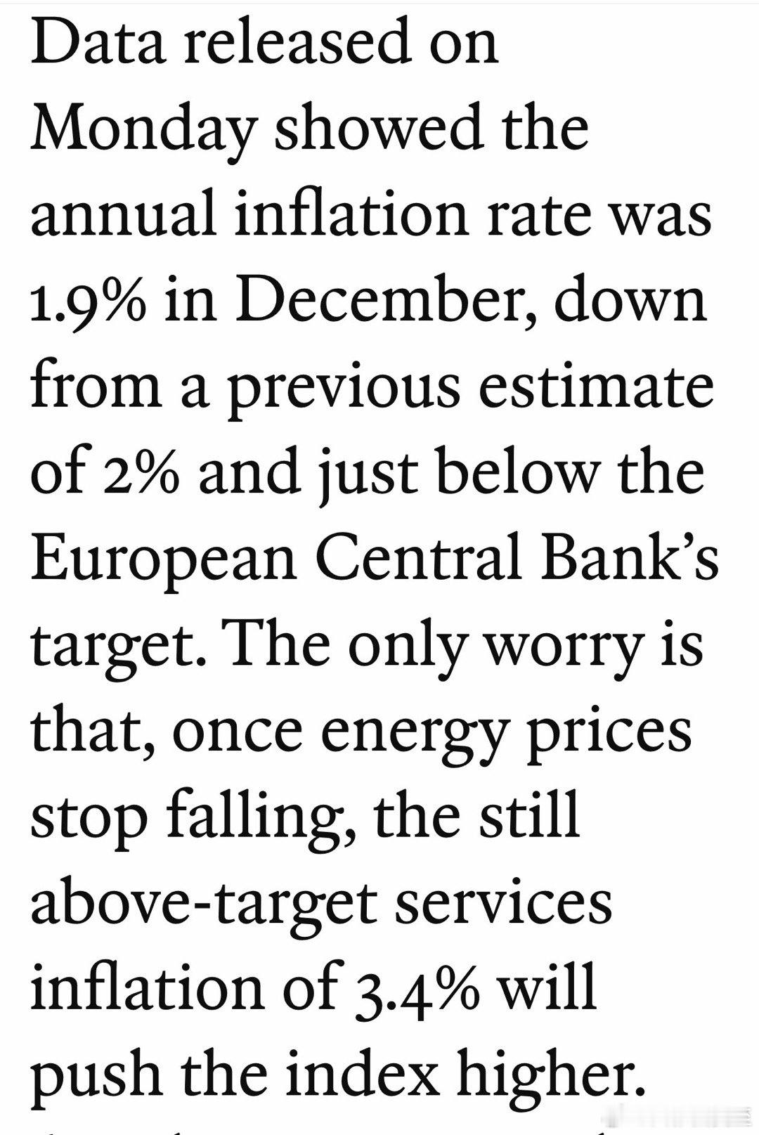 欧元区最新通胀数据:1.9%服务类通胀居高不下:3.4%总体在降,主要归功于能源价格📉