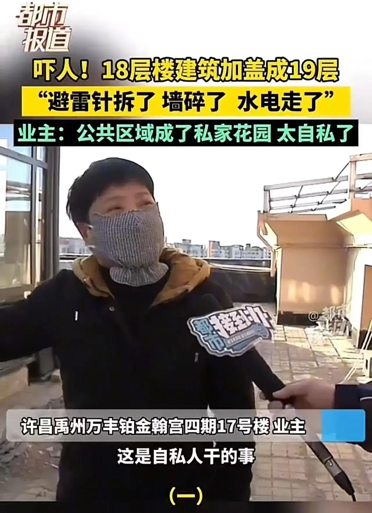 惊爆!有顶层业主竟然私自加盖阳光房,把原本18层的建筑硬生生变成了19层!这究竟是怎样的操作?楼下邻居们可是怨声载道。 据邻居们反映,这位顶层业主为了加盖阳光房,可谓是无所不用其极。避雷针被拆了,墙体被敲碎了,原本属于大家的公共区域,如今却变成了他的私家花园。邻居们纷纷表示,这样的行为完全不顾及他们楼下的安全,一旦发生意外,后果不堪设想。然而,面对邻居们的质疑和反对,顶楼业主却拒不拆除,甚至还振振有词地称,加盖阳光房是为了防漏。这样的理由,显然难以服众。毕竟,防漏的方式有很多种,为何偏偏要选择这种最极端、最危险的方式呢?更何况,私自加盖阳光房还涉嫌违法,一旦被相关部门查处,后果也是十分严重的。 顶层业主私盖阳光房,不仅危及楼下安全,还涉嫌违法,这样的行为实在不可取。大家对于这件事怎么看呢?欢迎在评论区留言讨论,一起为小区的安全和和谐出谋划策!违建阳光房 顶楼设计阳光房 跃层露台阳光房 顶楼搭建阳光房