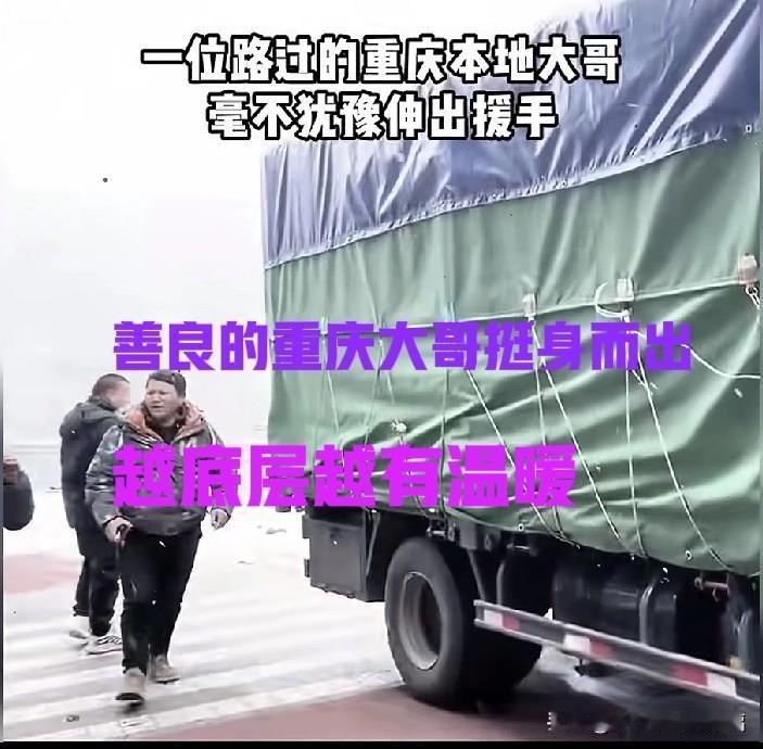 原来越底层越有温暖! 积雪路段,旁边就是300米悬崖,山东司机大哥摘下眼镜,擦着泪水求救“我不敢开了”。另一重庆司机大哥挺身而出,成功帮山东大哥把车开下险境。 越底层的人越温暖,他们没有功利心,他们共情彼此的不易,用最朴素的善意互相帮衬!能伸一把手就伸一把手。他们的心思单纯,面对陷入困境的人们他们仿佛看到了逆境中的自己,心里只想着“他们现在正需要帮助”