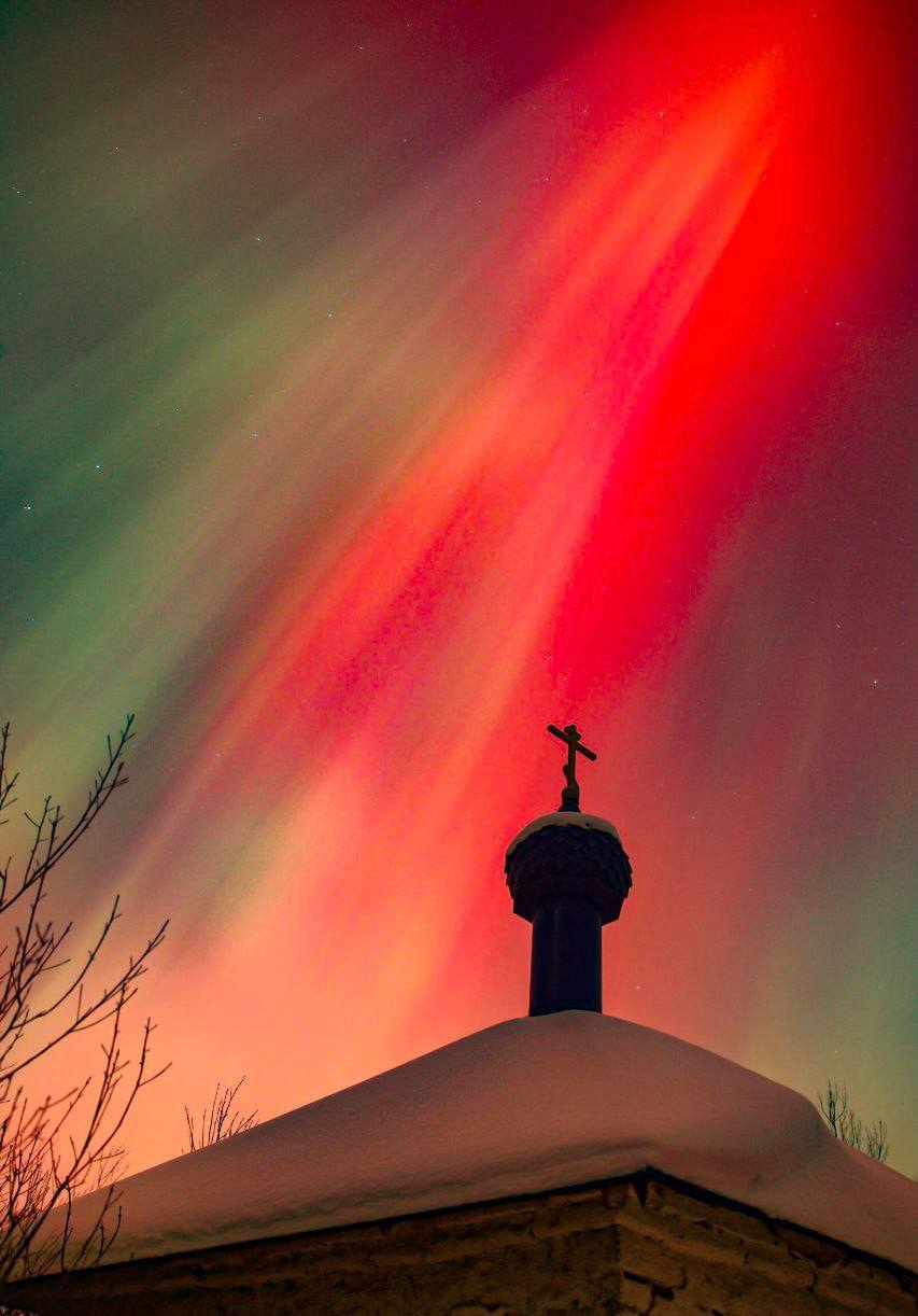 由于太阳发生强烈耀斑,俄罗斯及欧洲上空出现了北极光。