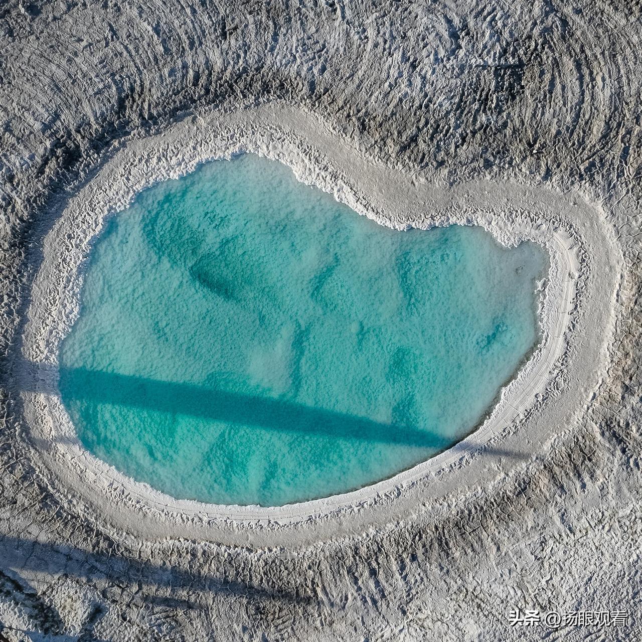 大柴旦翡翠湖是国家AAAA级旅游景区,其中爱心湖需无人机升至100-120米高空,才能清晰拍到心形湖面,浪漫至极,适合情侣打卡。