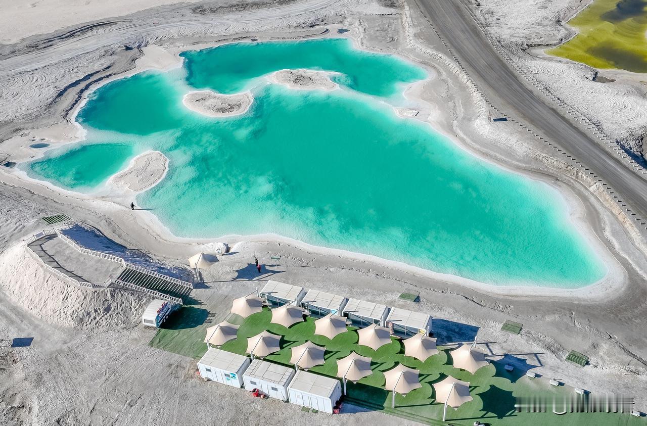 大柴旦翡翠湖的4号站:有被称为最出片的“Tiffany蓝”湖,湖水清澈,盐桥蜿蜒