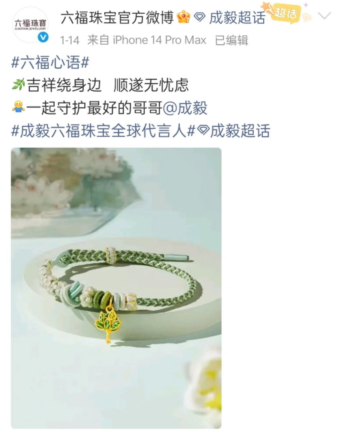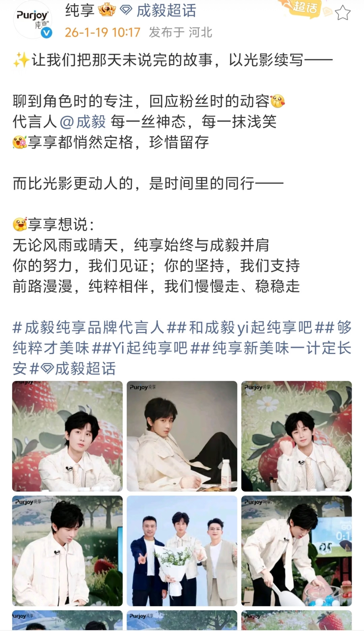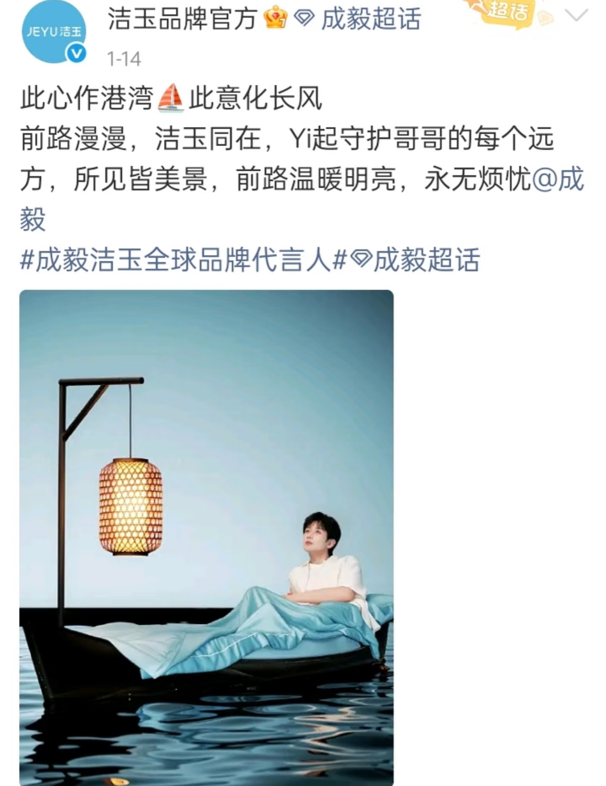 成毅的品牌方都好活人,好zqsg啊,文字里充满了对ee的爱和祝福。哥哥值得