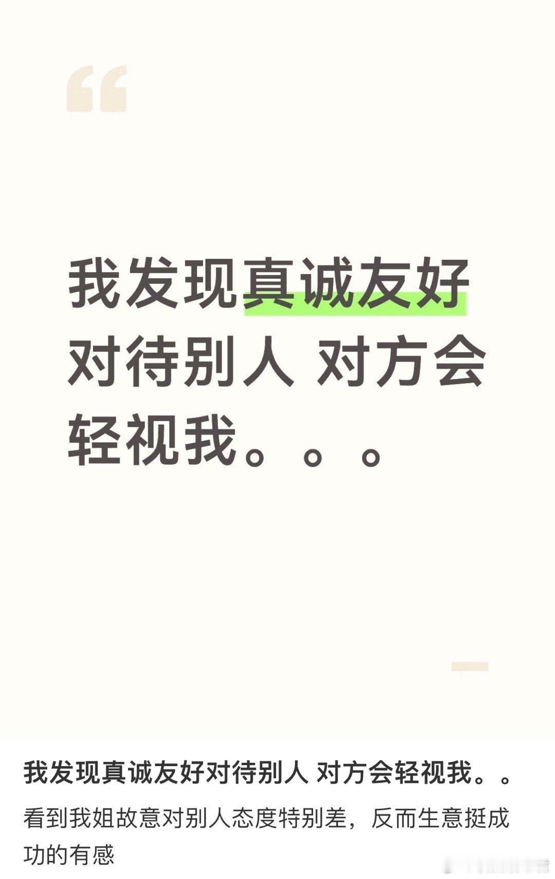 我发现真诚友好对待别人对方会轻视我。