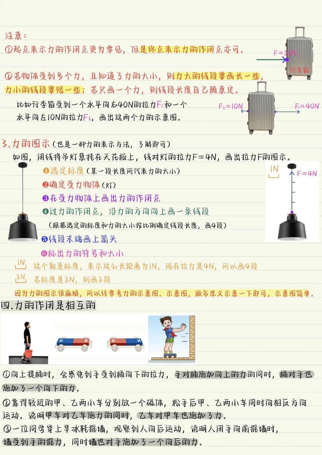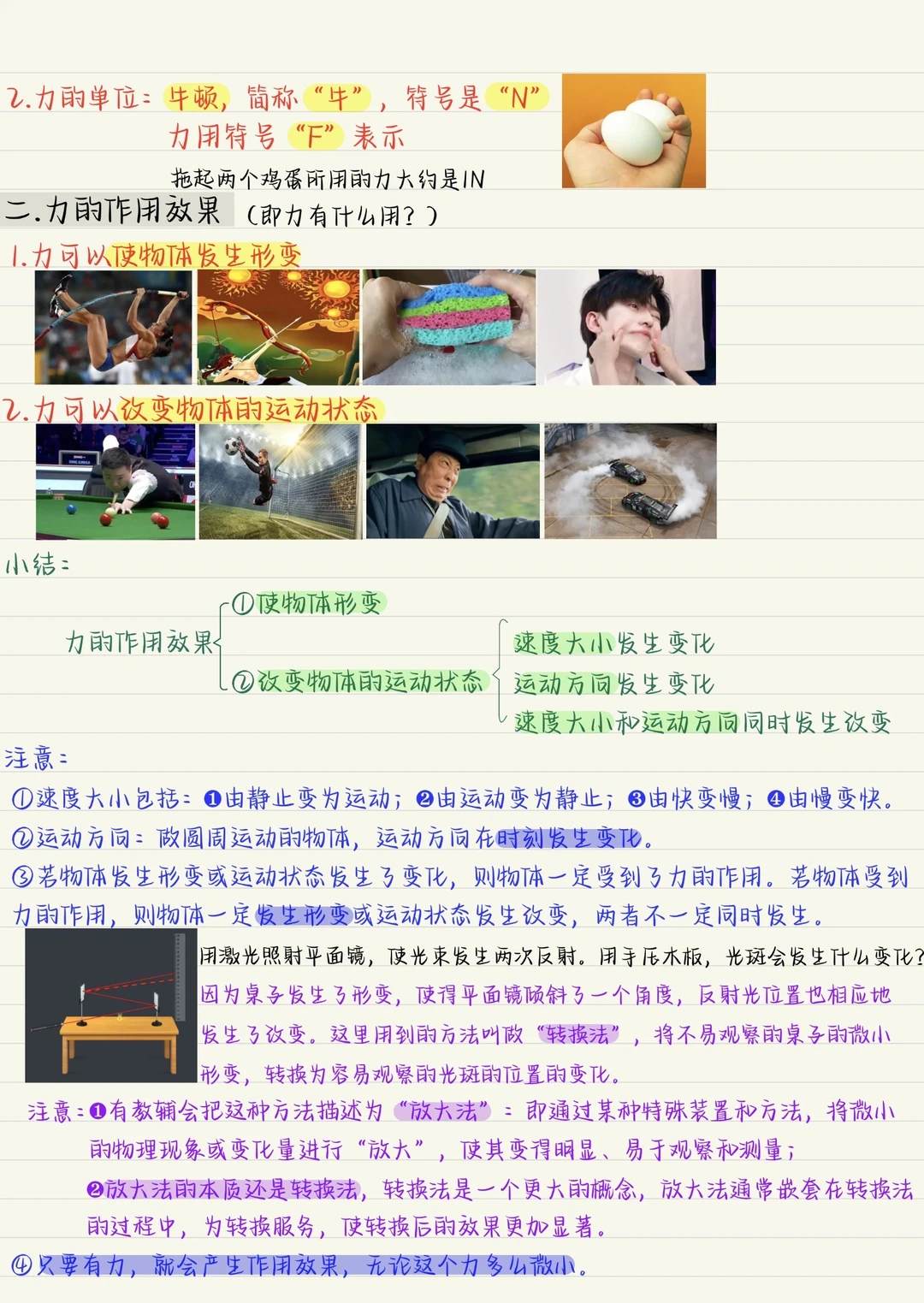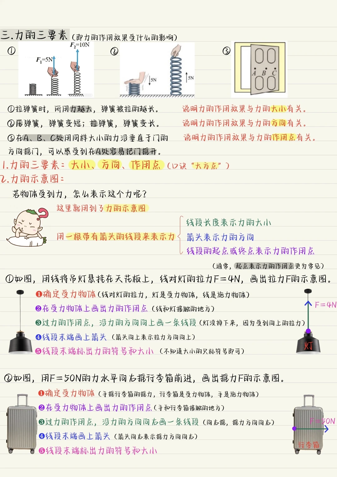 力:物体对物体的作用 力的作用效果:力可以使物体发生形变;例可以改变物体的运动状态。 力的三要素:大小方向作用点(大方点) 八下物理力初二下物理物理笔记