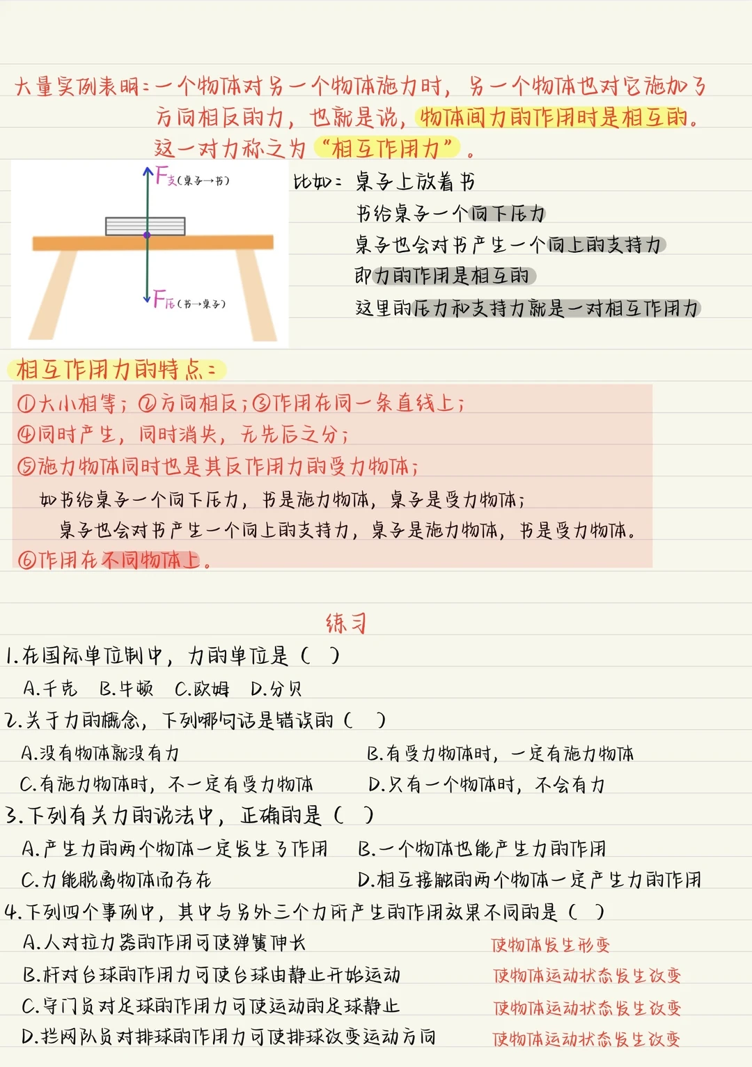 八下物理--7.1力