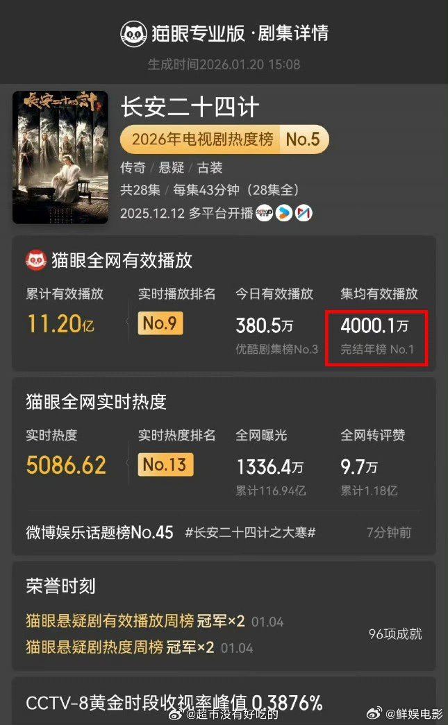 长安二十四计集均有效播放量破4000万恭喜《长安二十四计》集均有效播放量破4000万长安二十四计集均破4000万长安二十四计集均有效播放破4000万