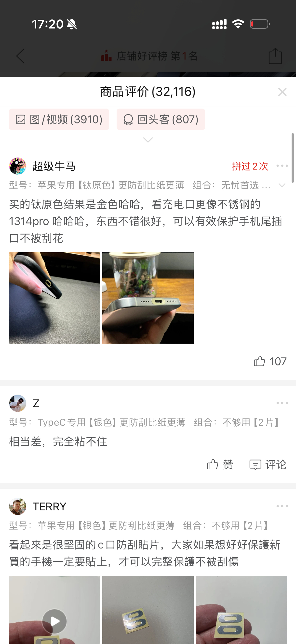 人类迷惑行为之「充电口保护贴」…最让我意外的是有三万多个人购买并评价