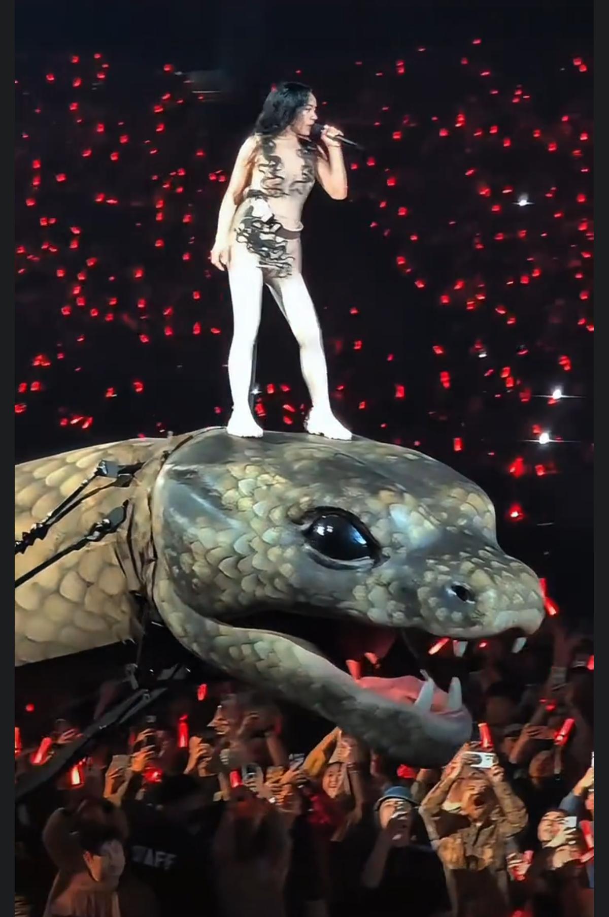 斥资2亿打造的演唱会, 机械牛和30米长的机械蛇 刚钻出来就被举报, 说会吸走观众的运气, 说演唱会像是宗教现场。 现在直接亏了7000万, 只能靠剩下的14场填坑! 这到底是网友迷信,还是先锋艺术呢? 其实蛇在咱们的传统文化里 本来就自带争议: 有人觉得是祥瑞, 有人觉得是邪恶。 所以这个机械蛇一亮相, 自然会引发巨大的争议, 但这真的是迷信吗? 也有网友认为举报者太玻璃心了, 容不下一点突破常规的东西? 但路人观众没看过这种阵仗, 第一反应就是“诡异”、“不舒服”。 说白了,举报的人未必真信封建迷信, 只是拿“公序良俗”当幌子, 宣泄自己看不懂的情绪 对此我想说的是 如果演唱会真的因为举报被整改, 那华语乐坛还有敢创新的歌手吗? 今天举报机械蛇“诡异”, 明天是不是要举报烟熏妆“不吉利”? 艺术的边界,难道要靠举报来定义? 你们说呢?