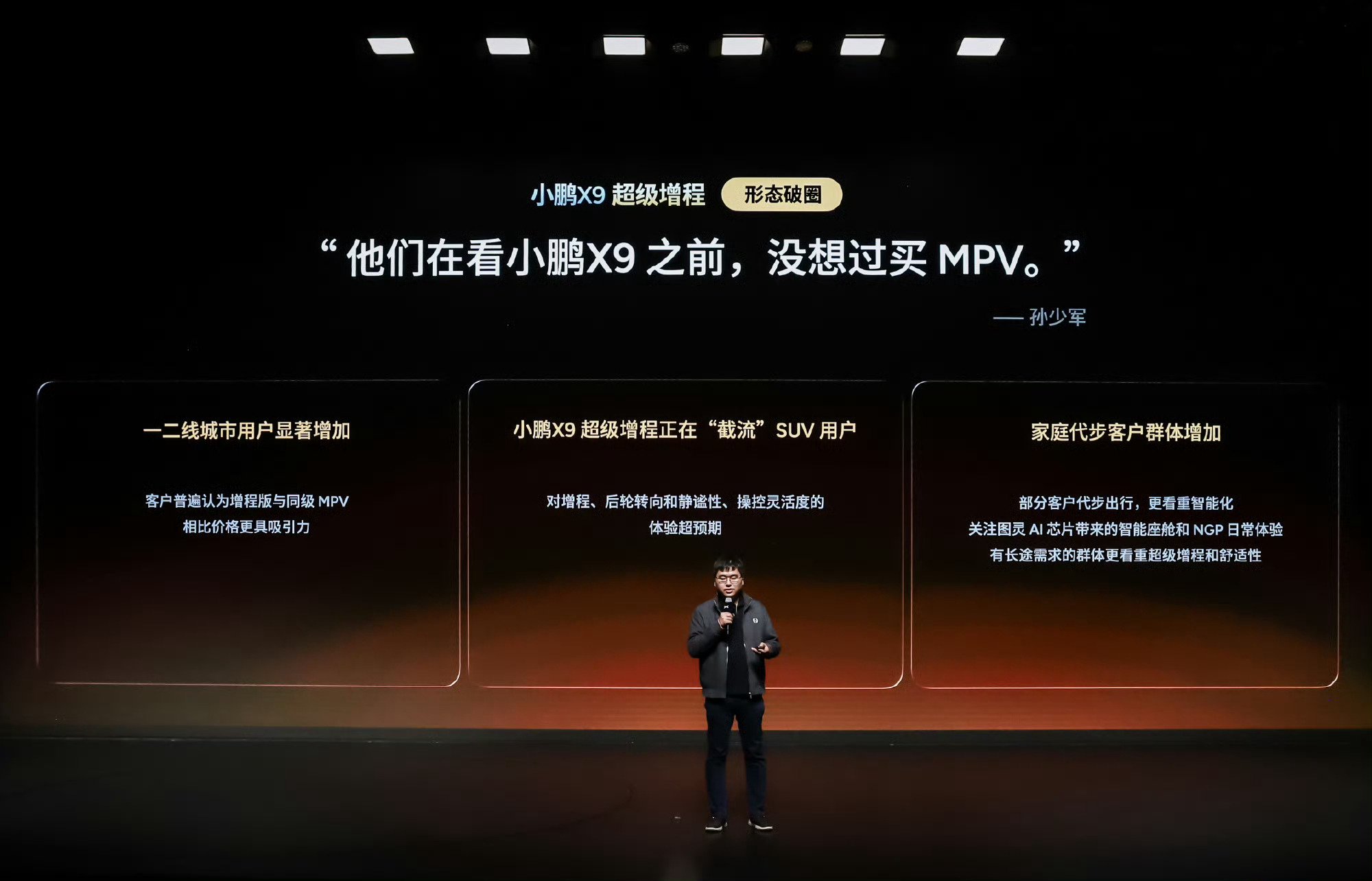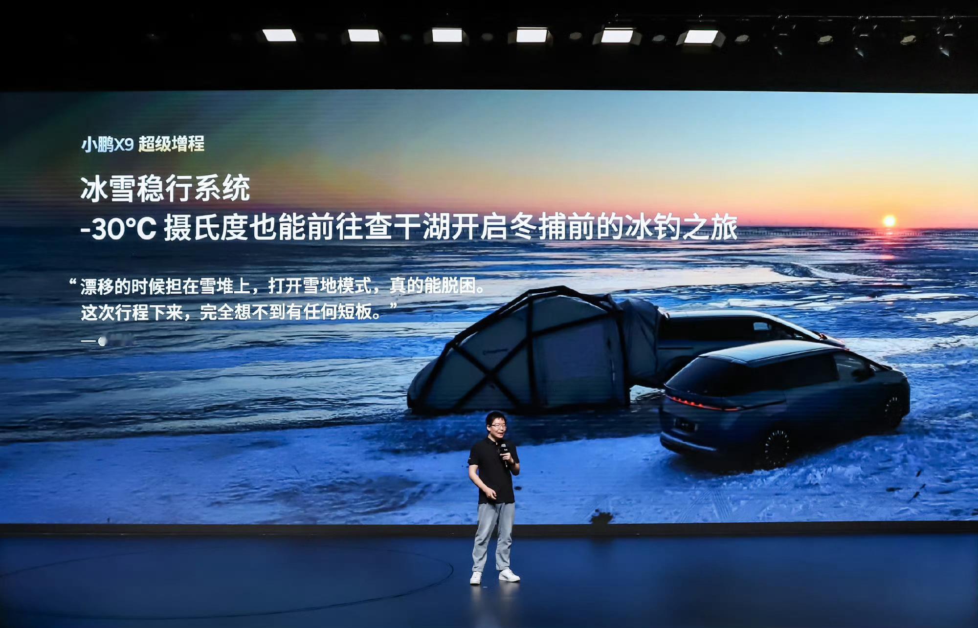 小鹏X9超级增程成为越来越多北方家庭的选择,1602km综合续航,452km纯电续航,任何时间任何地点都能自由出发。全球首发冰雪稳行系统,实现雪地模式、脱困模式,满足北方用户“冰雪路面不打滑、积雪泥泞可脱困”的用车需求