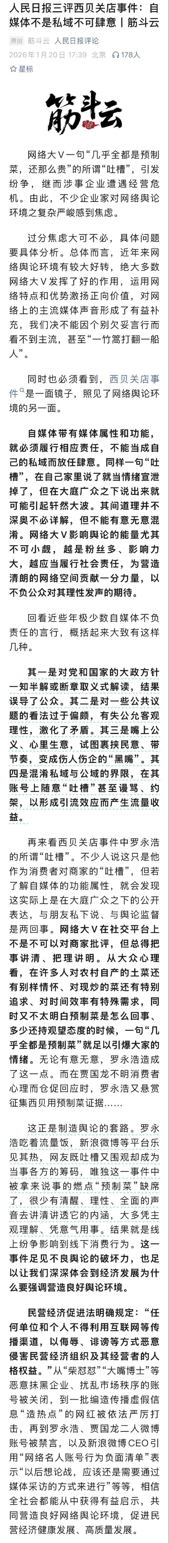 那些觉得罗老师的行为,仅仅是普通消费者吐槽商家的朋友们可以看看人民日报的第三篇评论文章……人民日报连续三天连发三篇评论,这真是少见