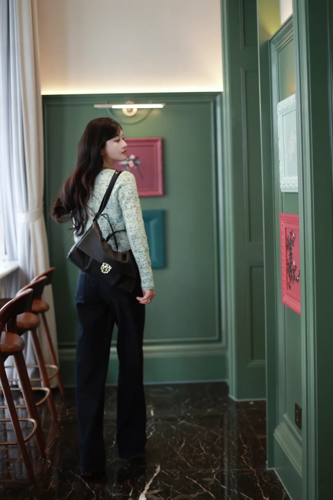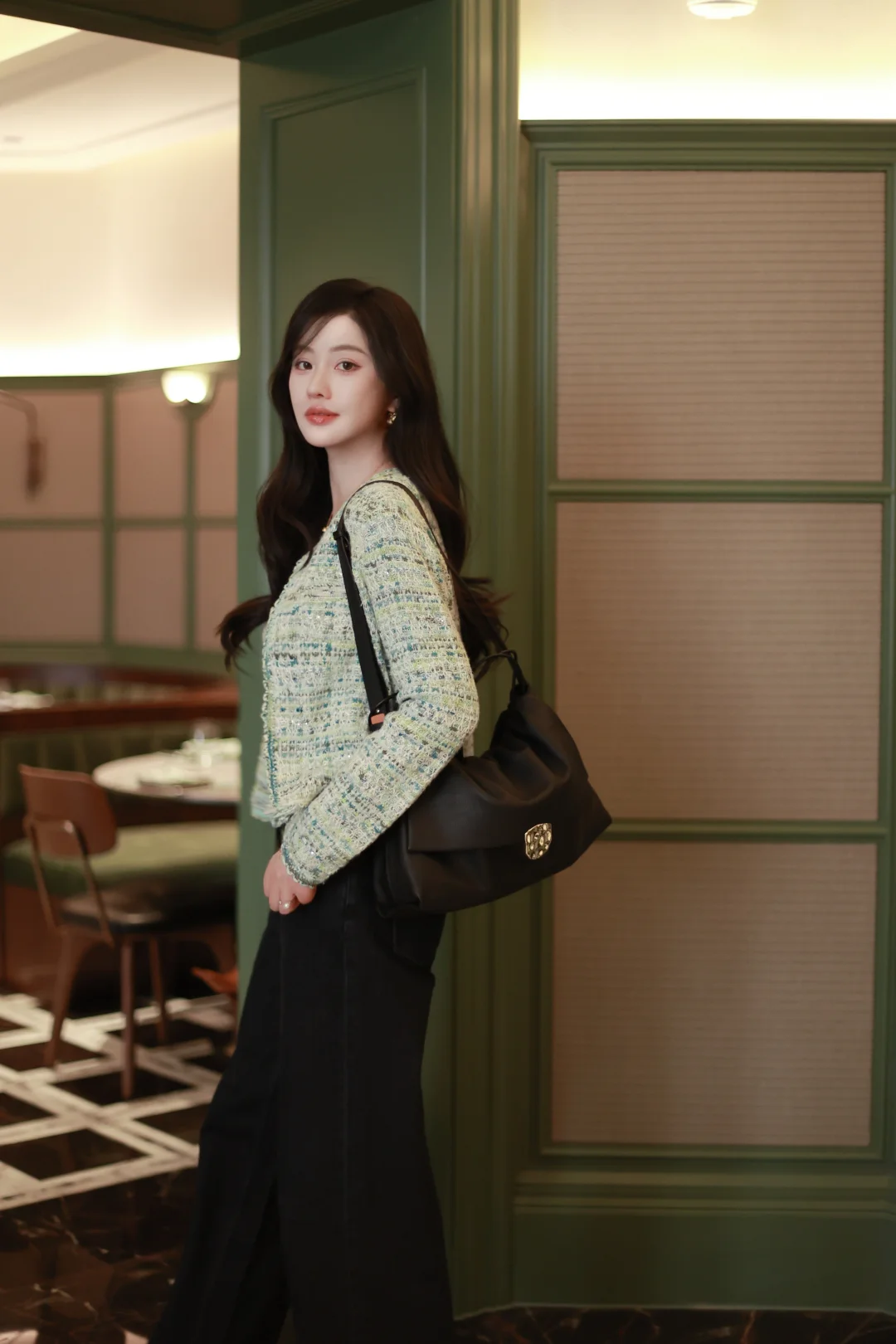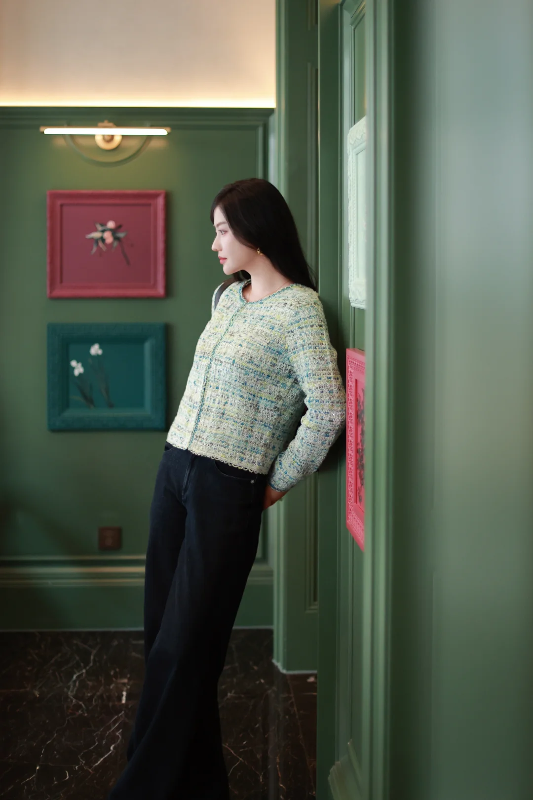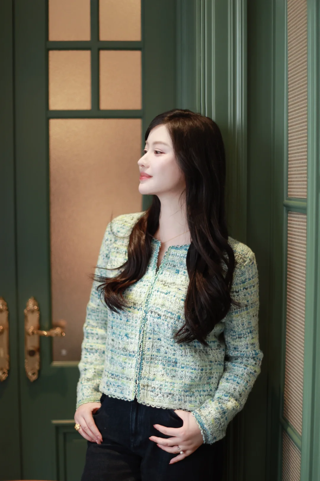 一个女人,一旦接触了斜刘海,就像鱼儿接触了水。 📝今日OOTD拆解 ▫️上衣:薄荷绿小香风短外套+同色系蕾丝边背心内搭 软fufu的混色编织纹理,自带柔光滤镜,短款版型刚好能拉高腰线,给下装拉长的空间。 ▫️下装:深色直筒牛仔裤 +酒红玛丽珍鞋 万能显瘦神裤垂感绝了,中和了上衣的甜腻感,休闲又精致。 咱的新发型+新穿搭都就位,就等一场初雪和热红酒,一个女人岁末的快乐就是这么简单。