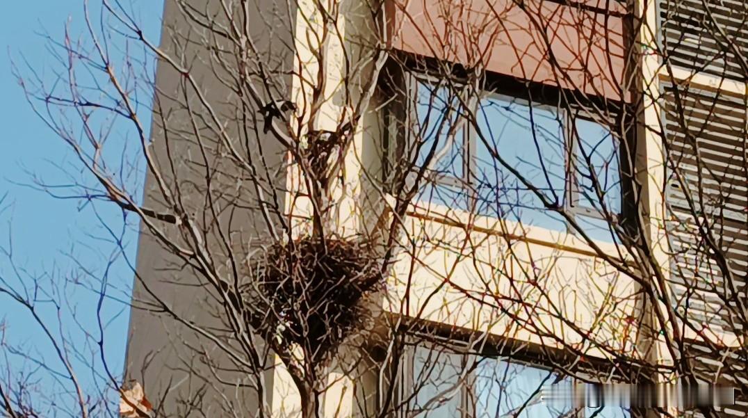 前两天散步时,我偶然遇见一对鸟夫妻正忙着叼树枝筑巢。今日再去瞧,新窝已然稳稳地立在枝头,有一只鸟还在精心“装修”。 在天寒地冻之际,它们早早便为冬天准备好了温暖的家。忆起寒号鸟的故事,我突然领悟:真正的安稳,从来不是坐等而来,而是一步步行动铸就的。 今日事今日毕,莫让拖延,辜负了本应温暖的生活。 鸟儿筑巢