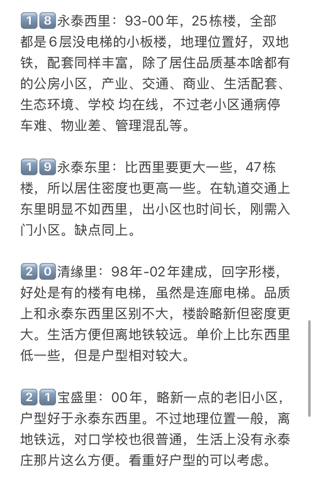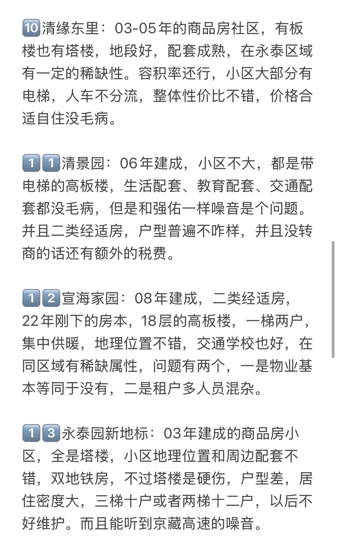 4️⃣清缘东里:03-05年的商品房社区,有板楼也有塔楼,地段好,配套成熟,在永泰区域有一定的稀缺性。容积率还行,小区大部分有电梯,人车不分流,整体性价比不错,价格合适自住没毛病。