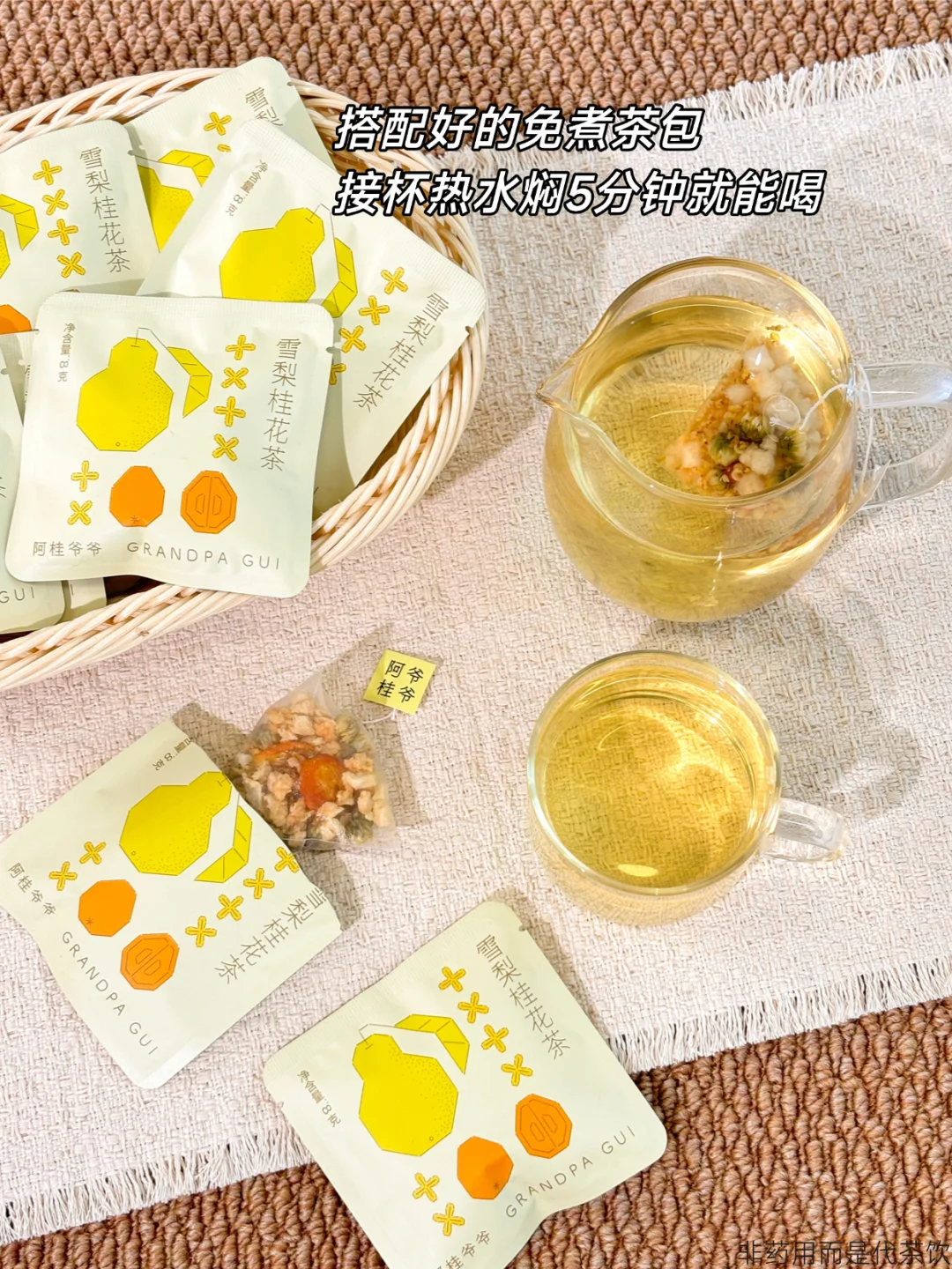 茶包都是搭配好的,沸水焖泡几分钟即可