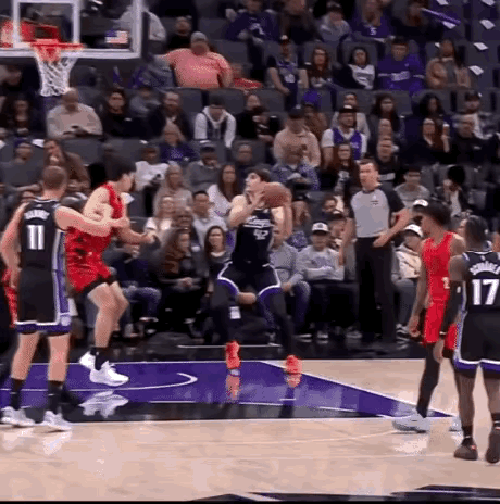 是里斯没站稳,腾出了篮前空间,导致撒博尼斯可以冲起来扣篮,小杨有点冤枉了