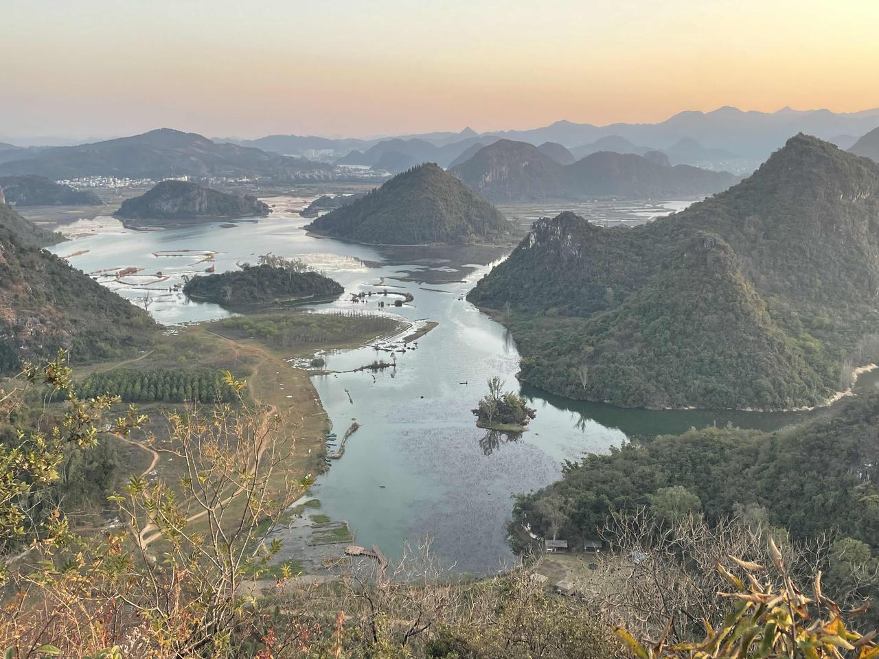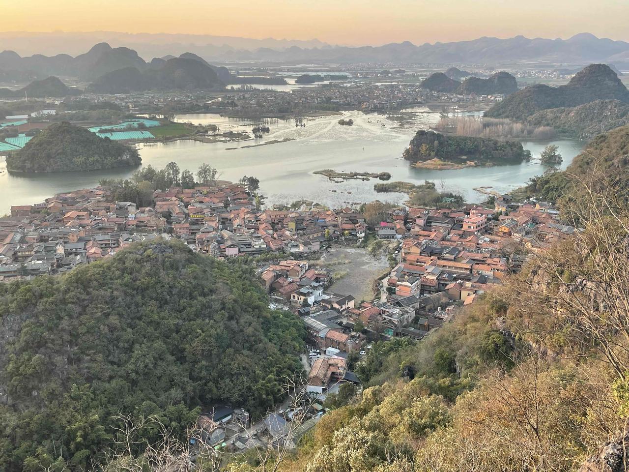 普者黑打卡实用攻略。普者黑有312座孤峰、54个湖泊,夏天有万亩荷花,还是电视剧《三生三世十里桃花》的取景地。如何不买门票,不使用景区交通工具,也就是不花一分钱就能拍到绝美的照片? 1住仙人洞村民宿,不到一百就可以有标准间。 2日落前登仙人洞主峰。山路崎岖,没有扶手没有护栏,甚至没有人打扫落叶,看到这个牌子以后果断上山。 3山上树木茂密,视野不开阔,千万不要半途而废,登顶之后自有一番景象 4今天是大寒,仙人洞村有好几家杀猪饭 我新发布的内容被官方推荐啦!👍你也快来发布一条吧!带