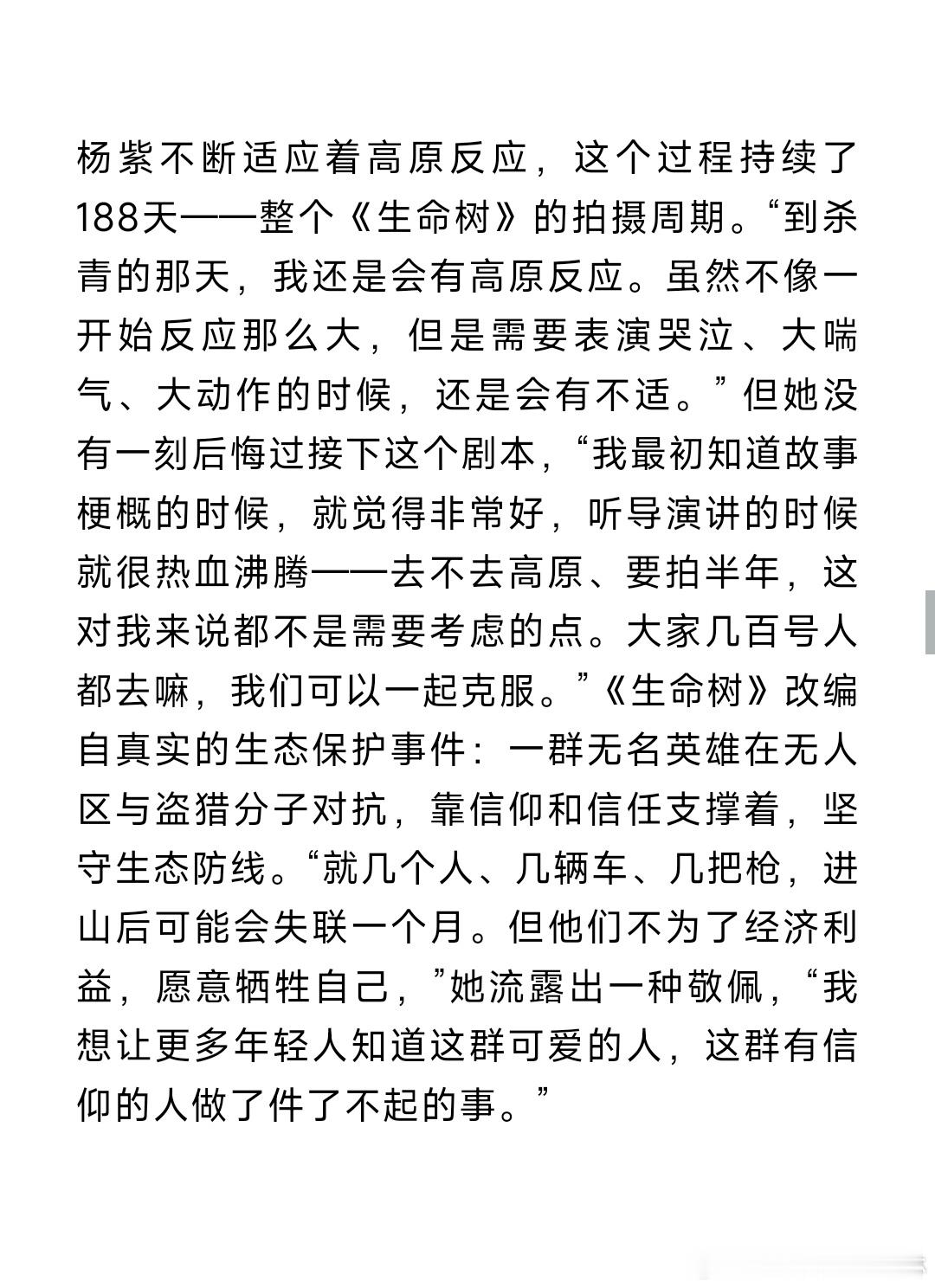 杨紫拍生命树高反持续了188天 188天高原反应啊!想想都头疼,她还要完成情绪爆发戏,这专业态度太牛了,期待生命树!