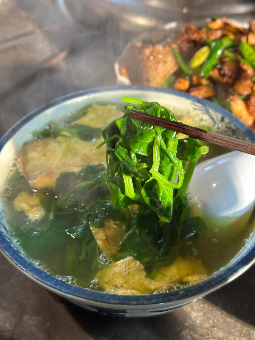 吃一顿清爽的冬日灶头饭!🍚🥢🤤因为豌豆尖和菜苔又多了一个喜欢冬天的理由啦.现掐的脆嫩鲜甜豌豆尖煮个鸡蛋汤还有绿油油的菜苔子配一个蒜苗回锅肉围在灶头上吃一顿简单的家常菜清清爽爽温暖幸福在国产科技里看到了人间烟火气被镜头里的人间烟火气给治愈了