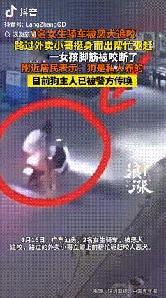 “严判狗主人” 1月16日,广东汕头。两名年纪在15岁左右的女生骑着电动车路过某小区时,突然被一条未拴绳的恶狗尾随。它盯着坐在后座的女孩脚后跟,紧紧的咬住。 女孩吃痛,被吓得尖叫出声,骑车的另外一名女孩也在慌张中,没控制住车头,导致电动车车侧翻在地。 幸运的是,就在这时路过的一名外卖小哥,他骑着电动车进行驱赶,一开始这狗确实跑了,不过后来又返回来继续咬那名女生。 也不知道为什么,它一直盯着那位女生。可能她露流露出来的恐惧,让恶狗觉得很兴奋吧,女孩被她咬的满身伤痕,特别是脚的部位据说伤得很重,连脚筋都咬断了。 最后还是外卖的小哥拿着外卖箱狠砸恶狗,加上附近的群众也拿着木棍和扫帚,加入驱赶,这才没有造成更大的伤害。 当然了,两个女孩都被咬伤,只不过另外一名女孩,伤的比较轻而已。 事件发生后,当地的警方已经介入调查处理,很快,根据附近居民的协助,狗主人也被传唤并拘留。 据了解,这条狗平时是拴在院子里的,这天不知道为什么突然挣脱了狗绳,并且还出来伤人,真是太可恶了。 视频在网上引起了网友的热议,网友们很生气,纷纷要求严惩狗主人并把咬人的狗给严肃处理掉,对于未拴绳狗伤人的事件,已经不是个例了,生活中屡屡发生这种悲剧,可以说已经到了触目惊心的地步。 尽管相关法律法规出台对于宠物狗的饲养和限制,可是依然没有彻底的解决此类事故的发生,这究竟是为什么呢?