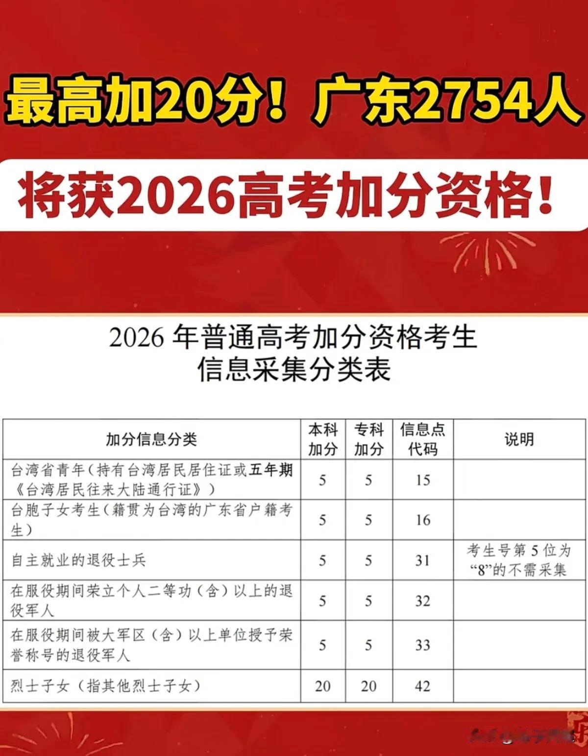 今日,广东省教育考试院发布了2026年高考加分名单通知, 据统计,该省共有2754名考生符合高考加分条件。 具体包括:“三侨考生”526名,台湾地区户籍考生113名,广东省内少数民族考生1879名,自主就业退役士兵234名,以及烈士子女2名。