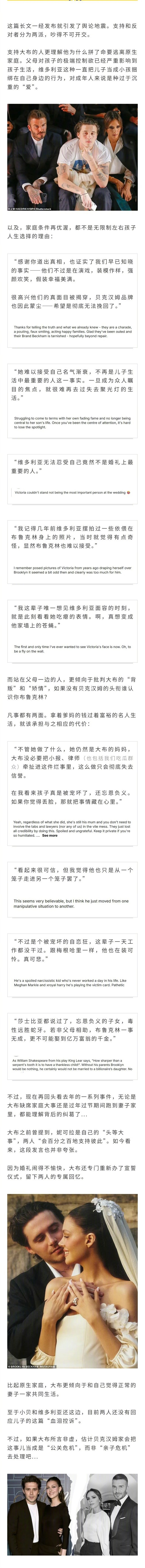 太炸了...贝克汉姆大儿子发长文血泪控诉,称自己和父母永远不会和解。他提到一家人情感虚伪只为商业考虑,长期对孩子施加控制,实锤了贝嫂抢他和老婆婚礼上的首舞,父母甚至逼他弃贝家姓...